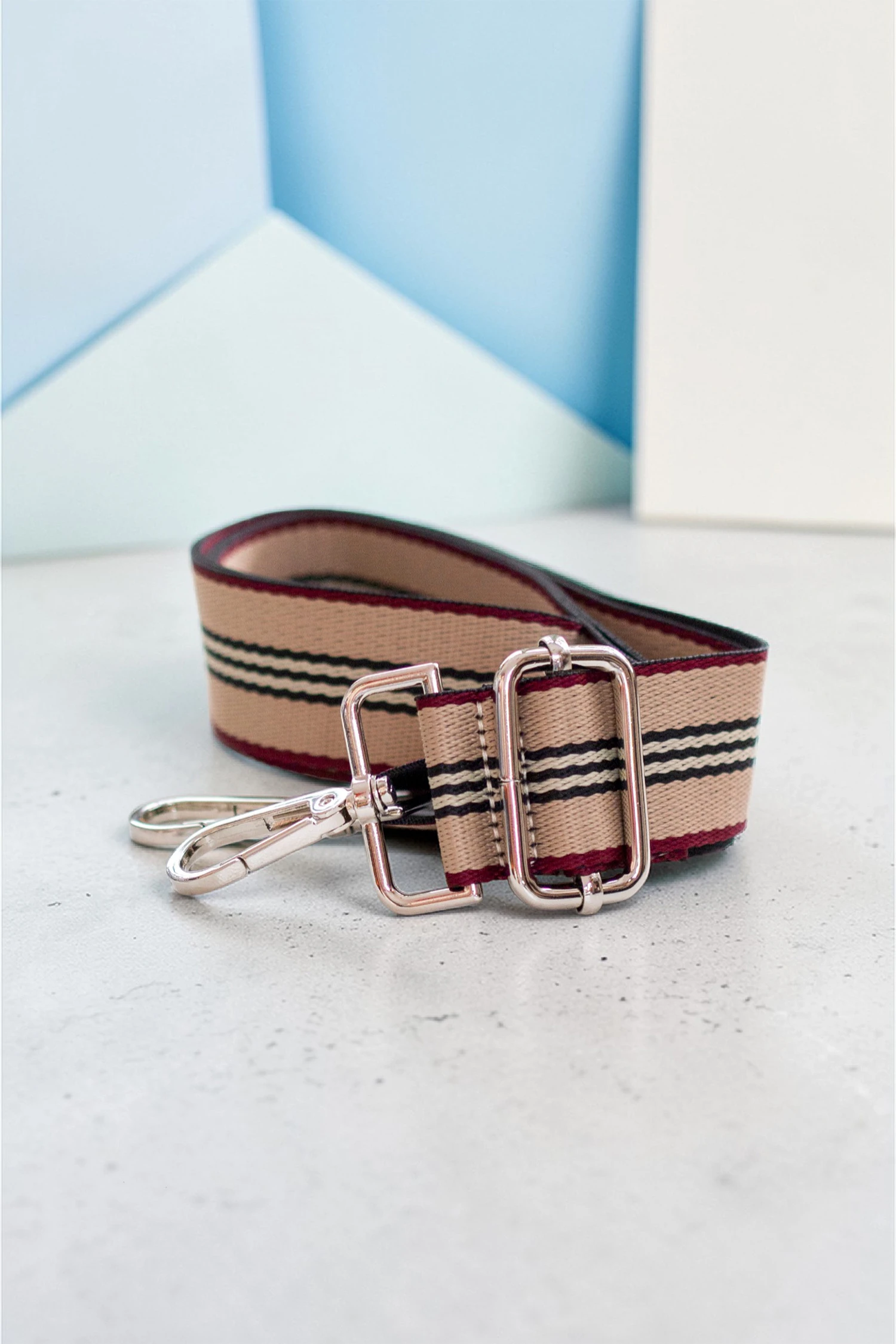 Regulowany pasek w kolorze beżowym. Srebrne okucia.