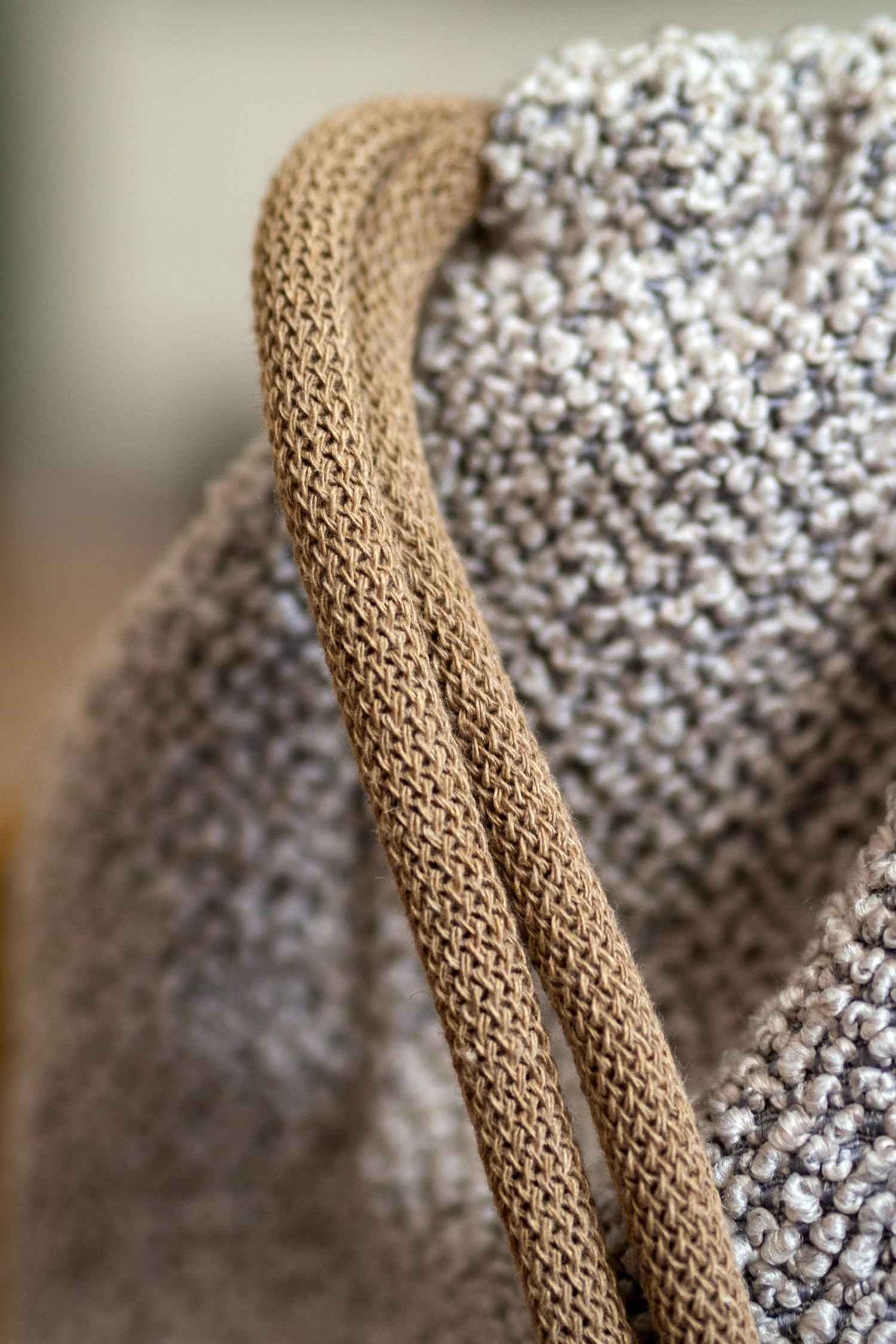 Grube, bawełniane, sznurki w kolorze jasnobrązowym.