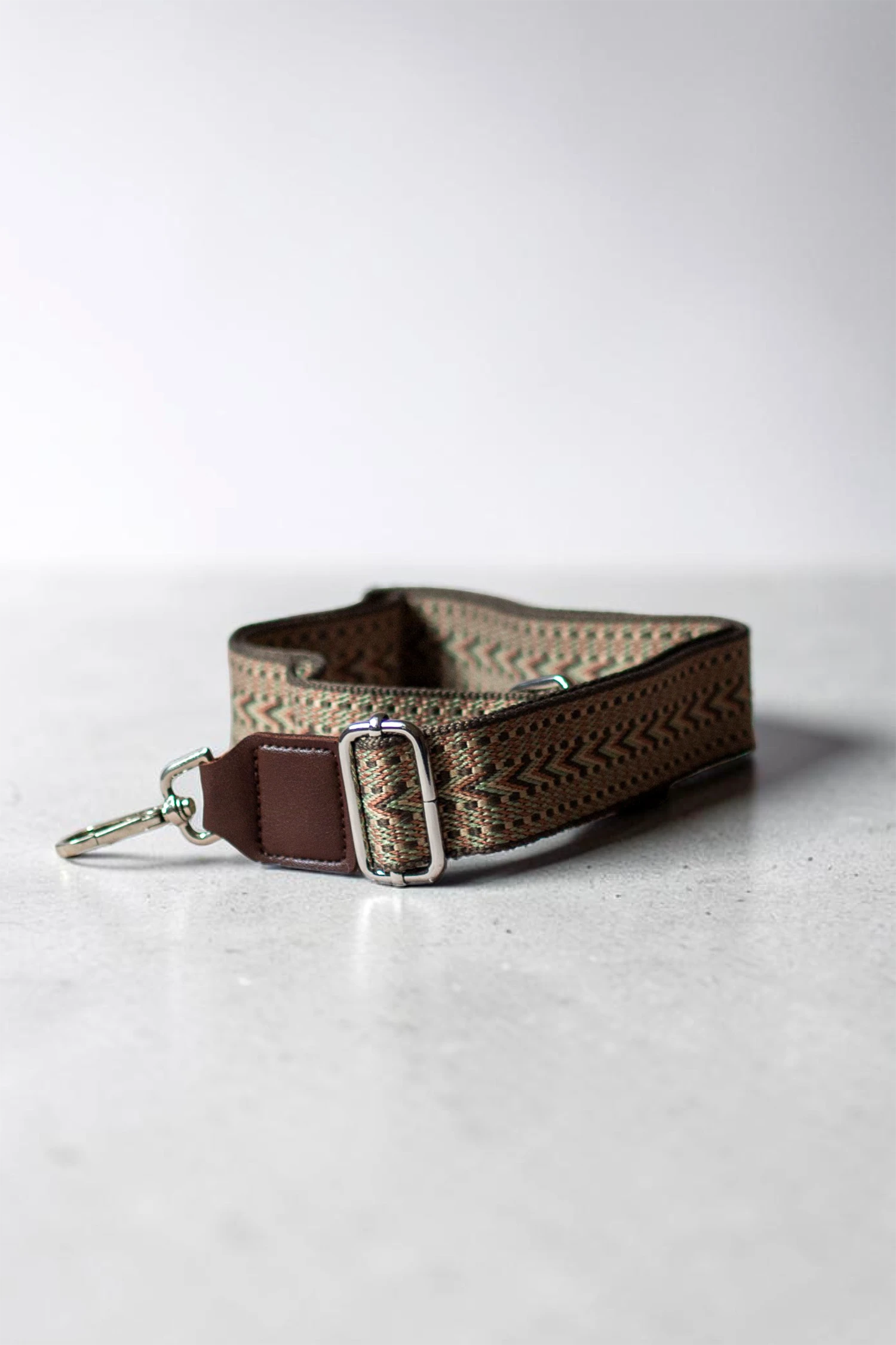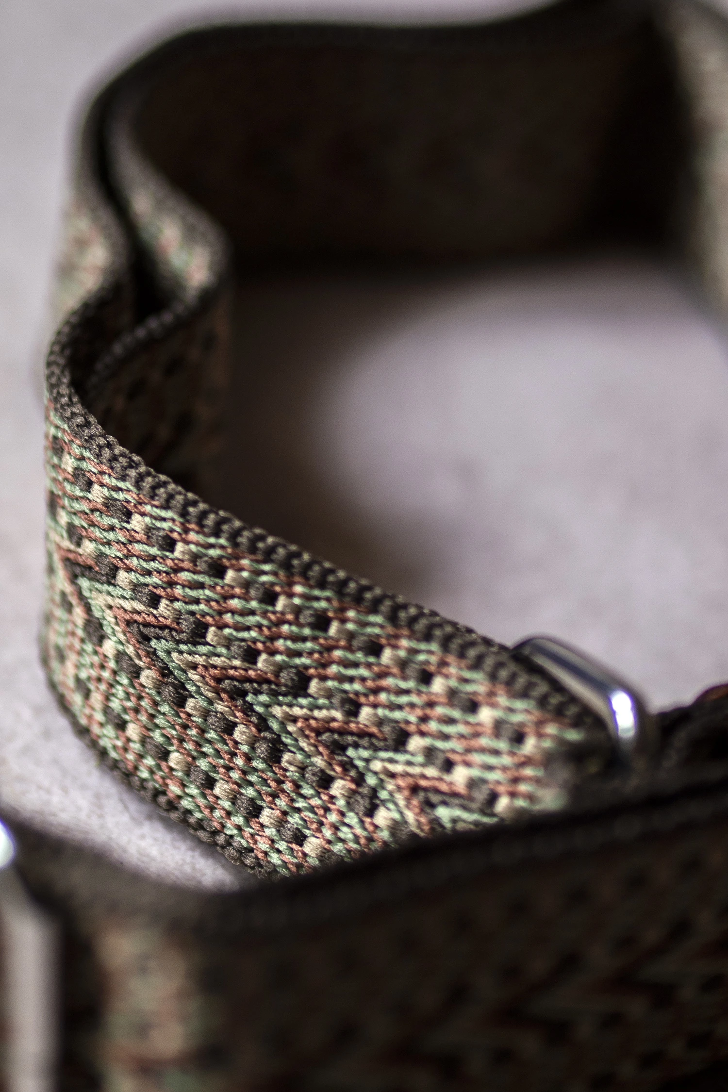 Regulowany pasek w kolorze brązowo-oliwkowym. Srebrne okucia.