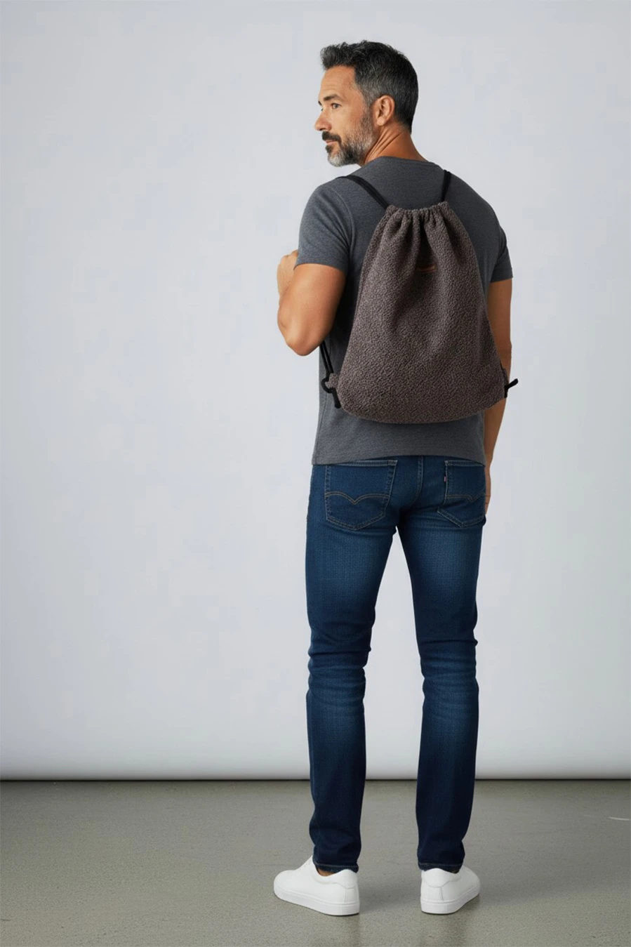 Plecak worek wkolorze brązowym.