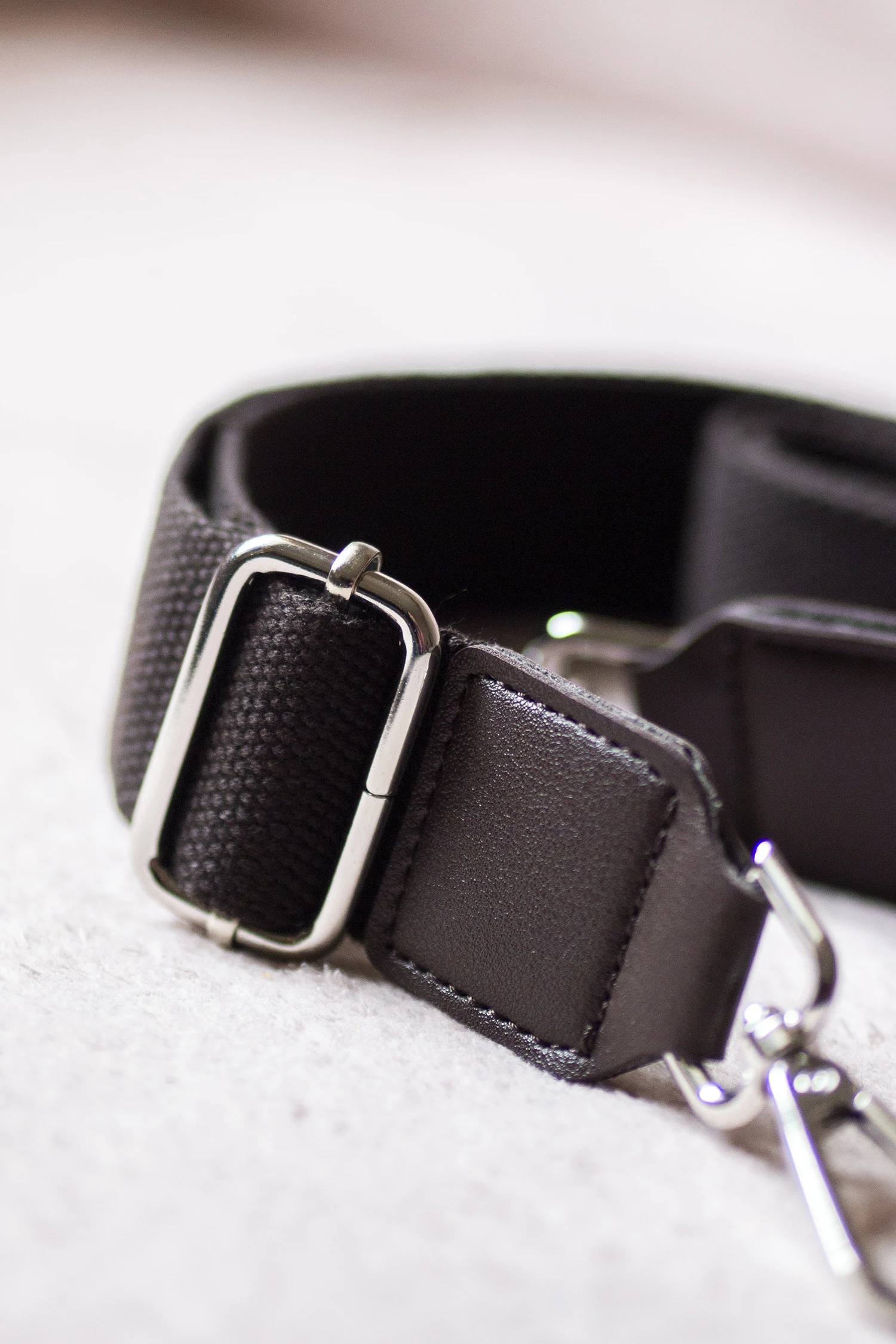 Regulowany pasek w kolorze brązowym. Srebrne okucia.