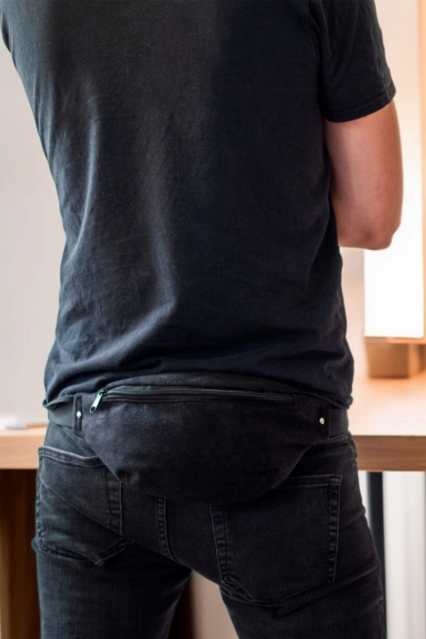 Duża nerka saszetka biodrowa wykonana z czarnej mikrofazy.