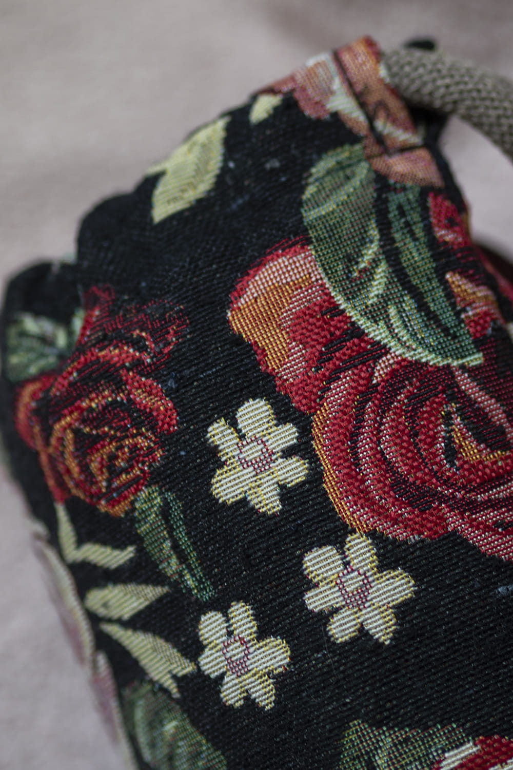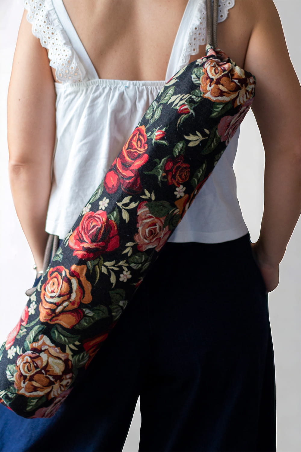 Czarny pokrowiec na matę do jogi z żakardu w kwiaty