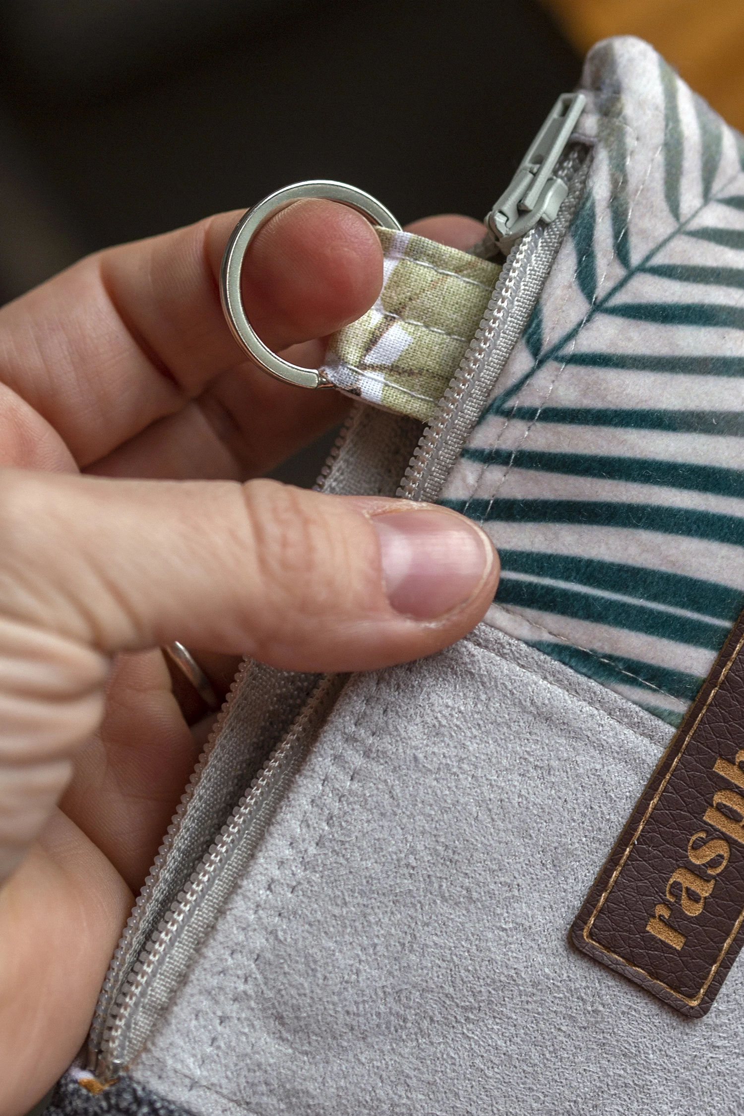 Pokrowiec w środku posiada metalowe kółko do którego można dopiąć klucze.