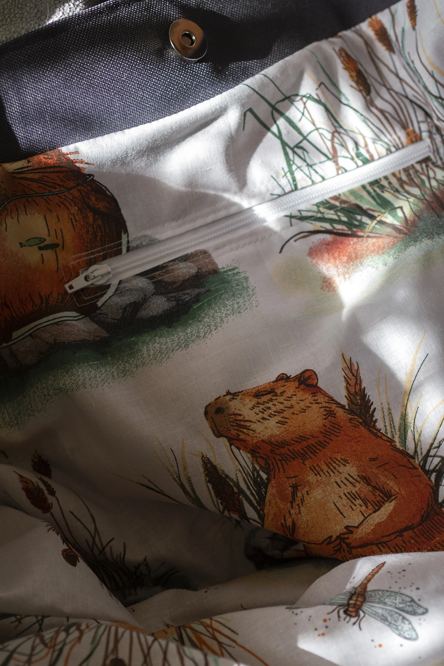 Wnętrze wykonane z kolorowej, bawełnianej podszewki w kapibary.