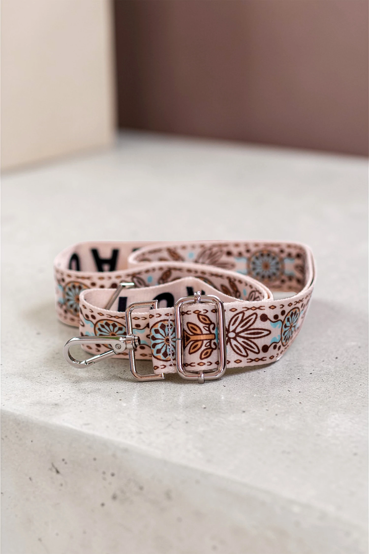Jasny pasek do torebki w kwiaty
