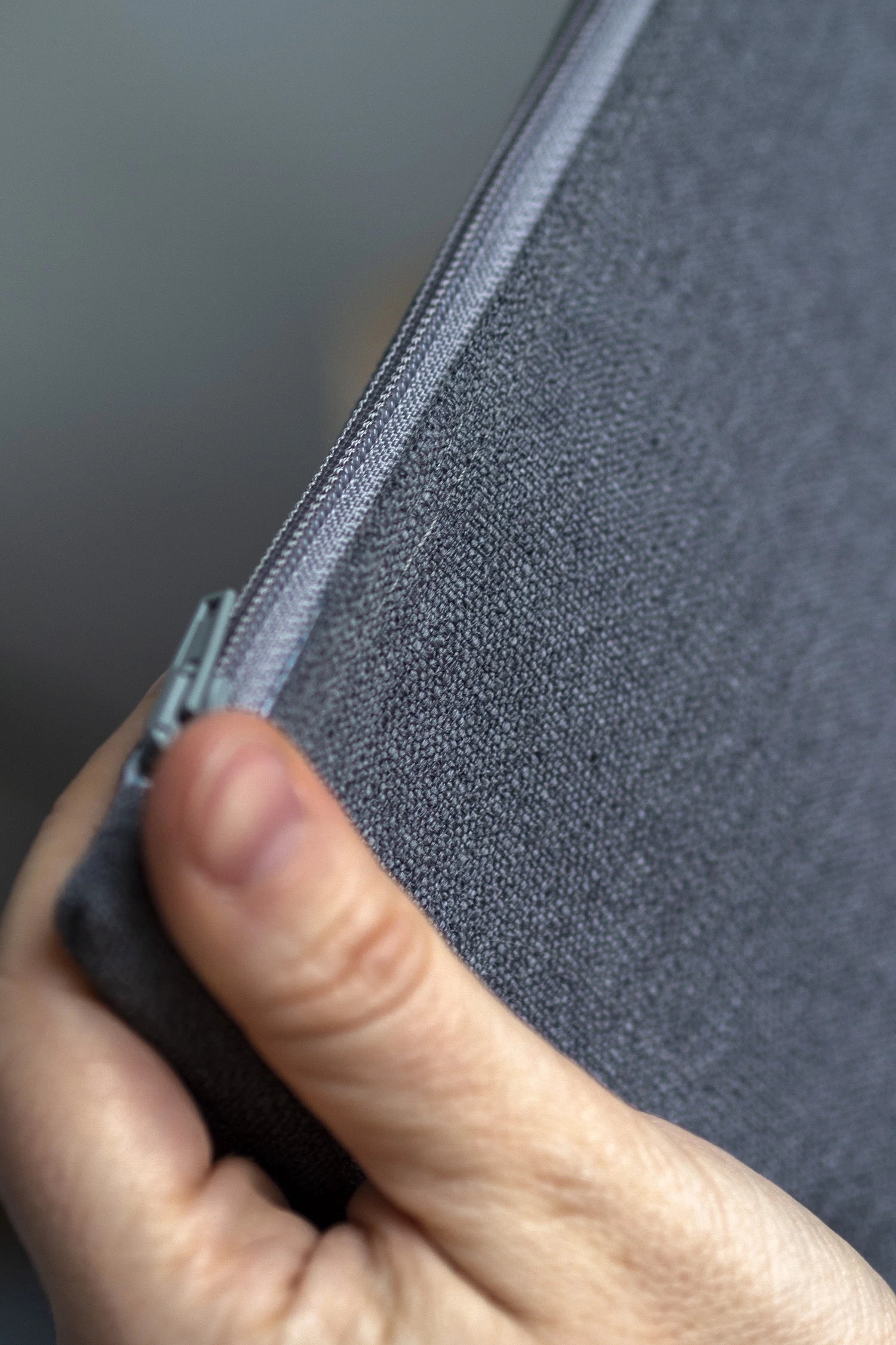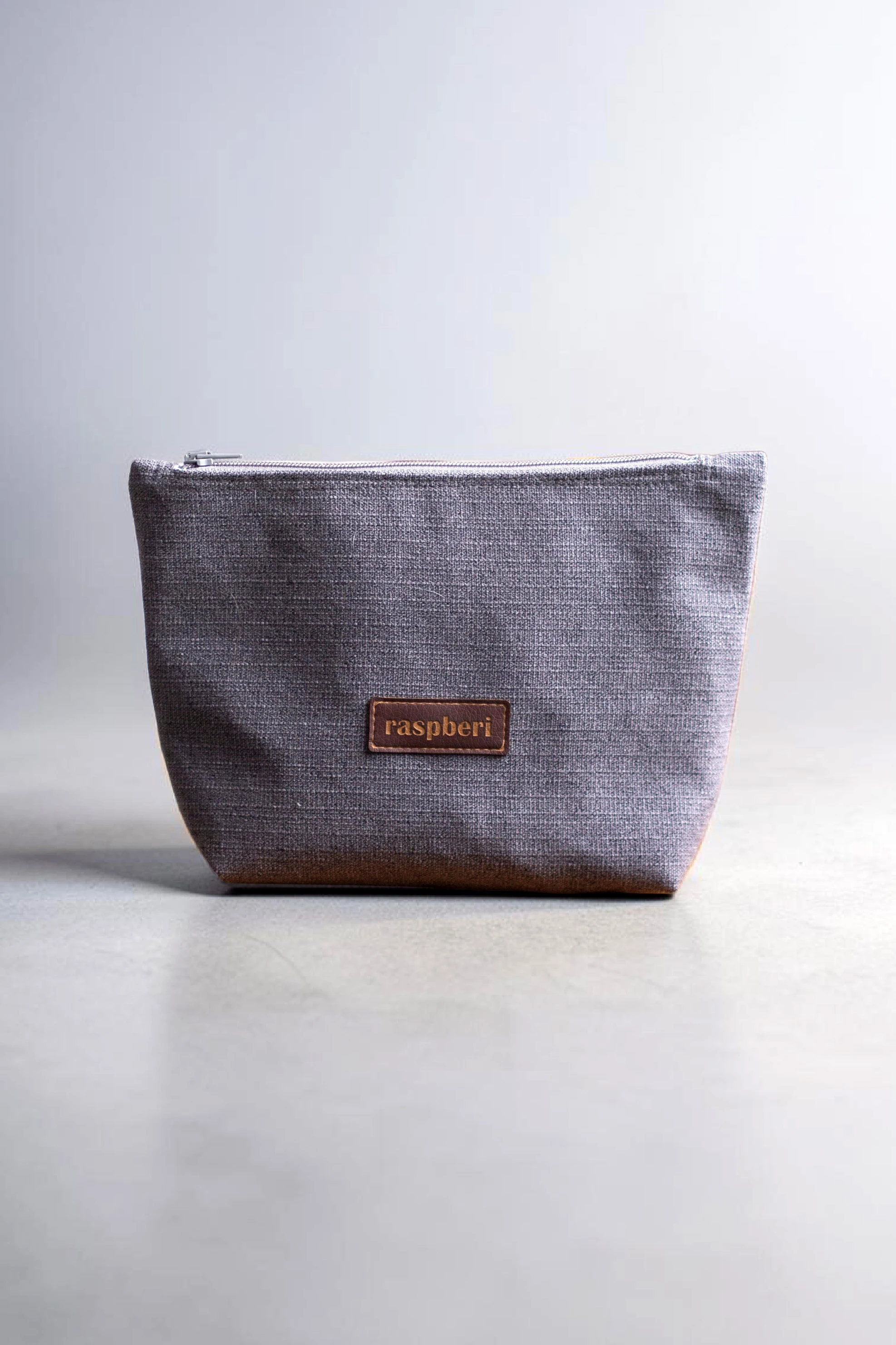 Duża kosmetyczka w kolorze szarym.