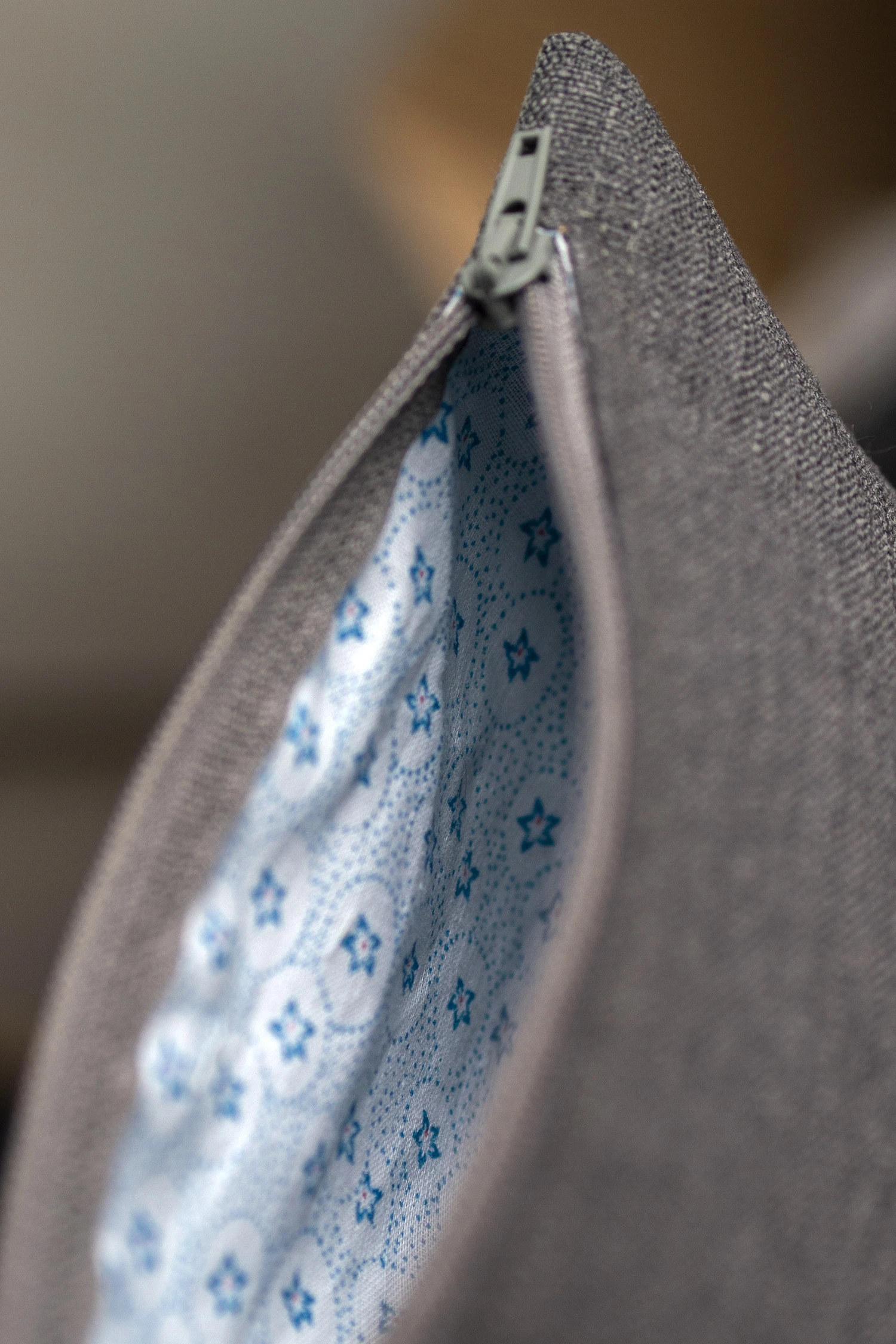Kosmetyczka jest zapinana na suwak, w środku bawełniana podszewka.