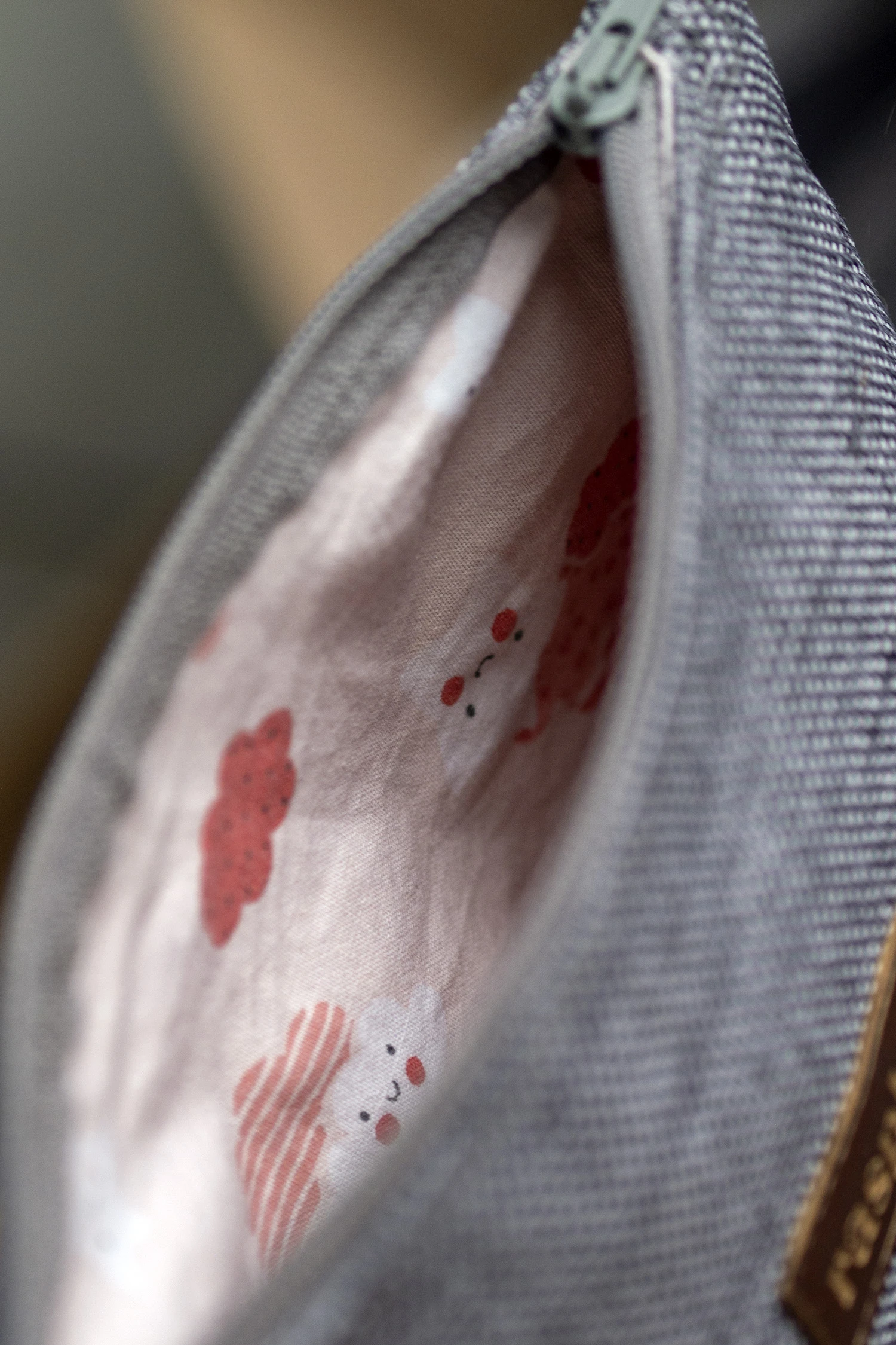 Zapinana na suwak, w środku wszyta bawełniana podszewka.