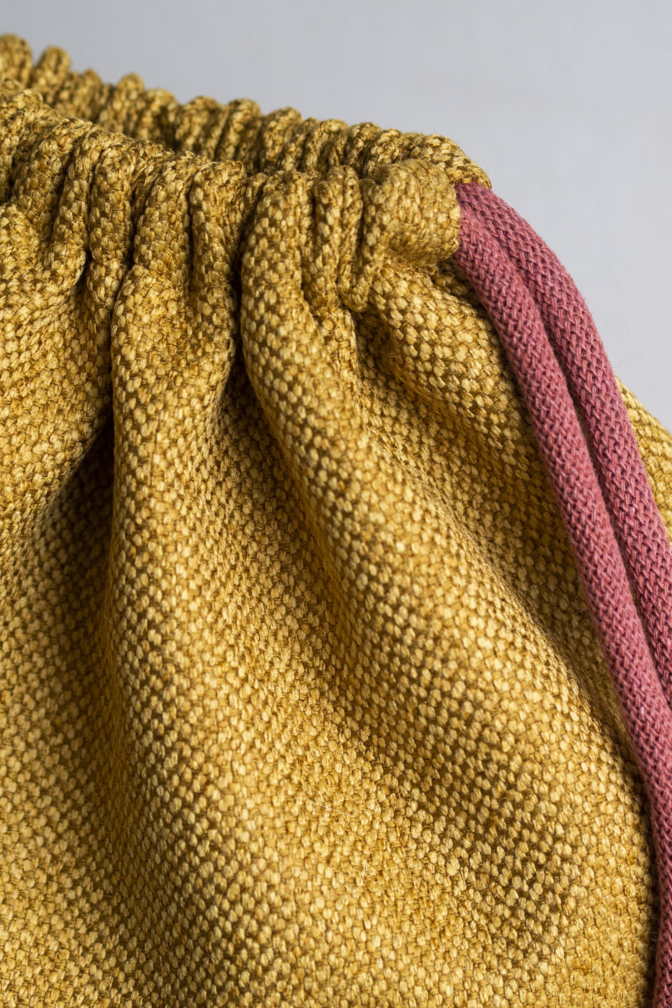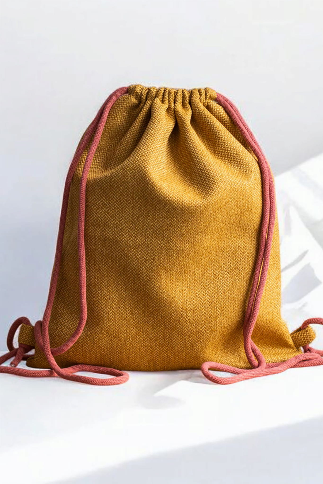 Plecak worek wykonany z plecionki w kolorze miodowym.
