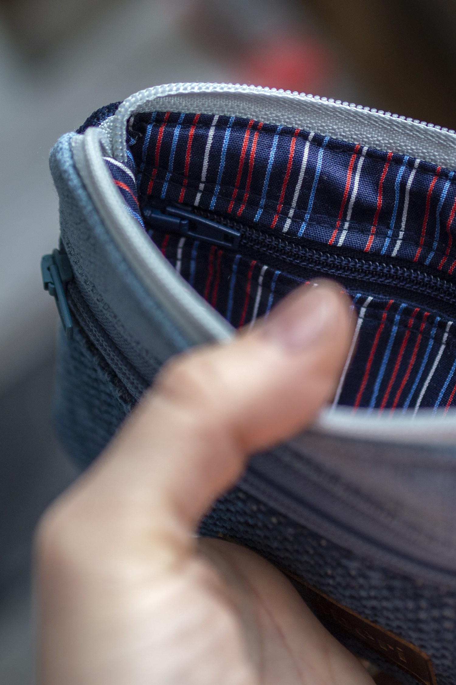 Idealny na karty płatnicze oraz pieniądze. Zapinany na suwak, z przodu kieszonka na drobne, w środku bawełniana podszewka i kieszonka na suwak.