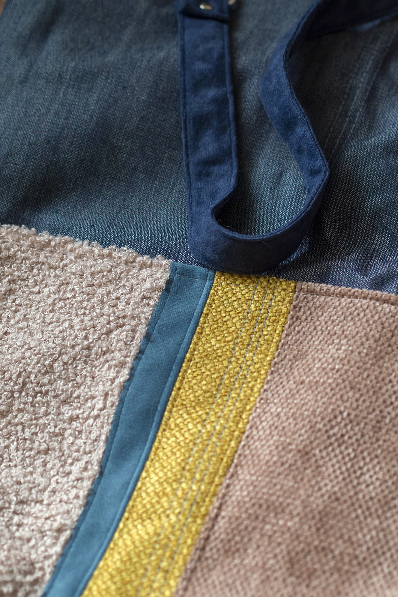 Duża torba na ramię wykonana z niebieskiego jeansu.