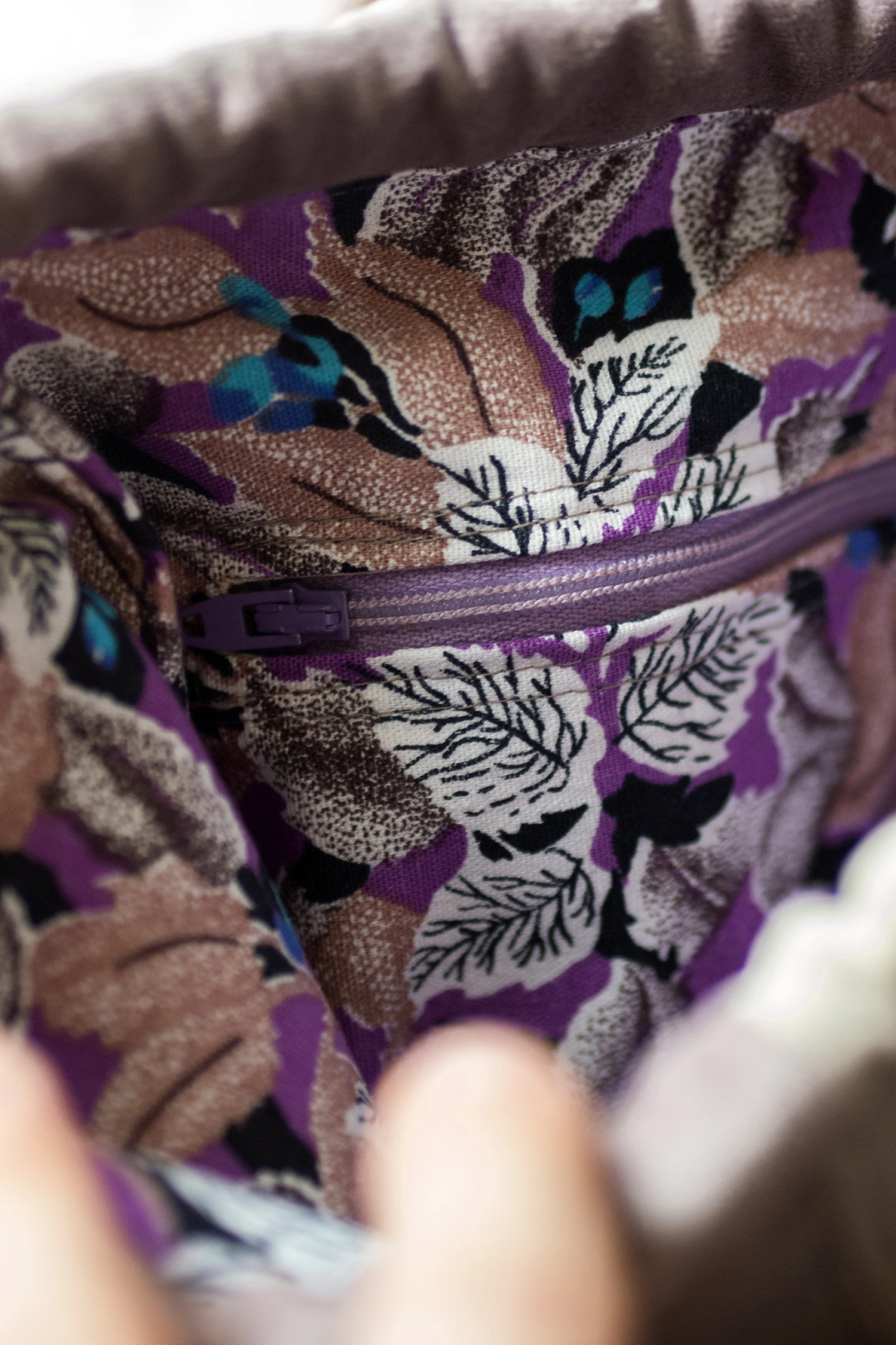 Środek torebki wykończony jest bawełnianą podszewką.