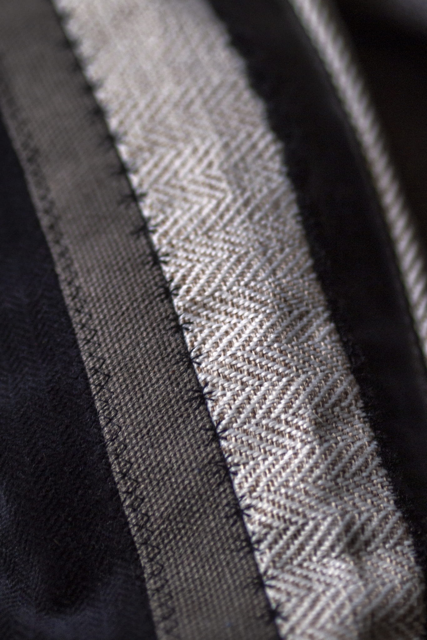 Bawełniana podszewka, okrągłe dno. Całości dopełnia gruby, bawełniany sznurek w kolorze szarym.