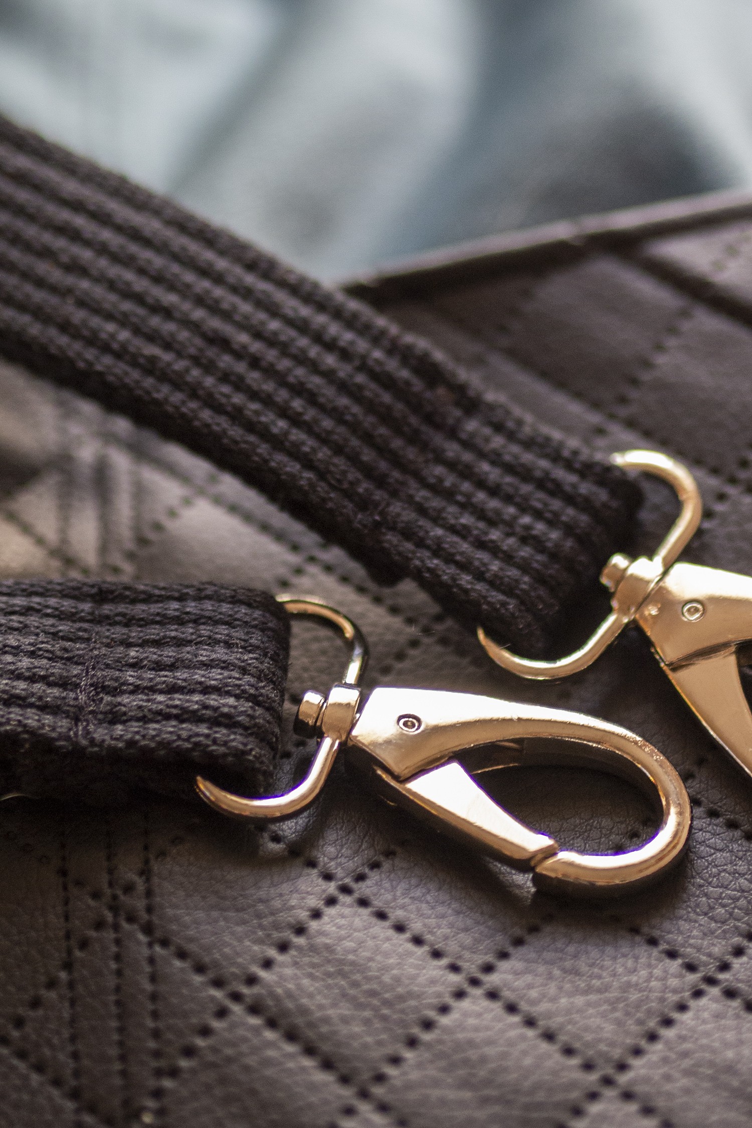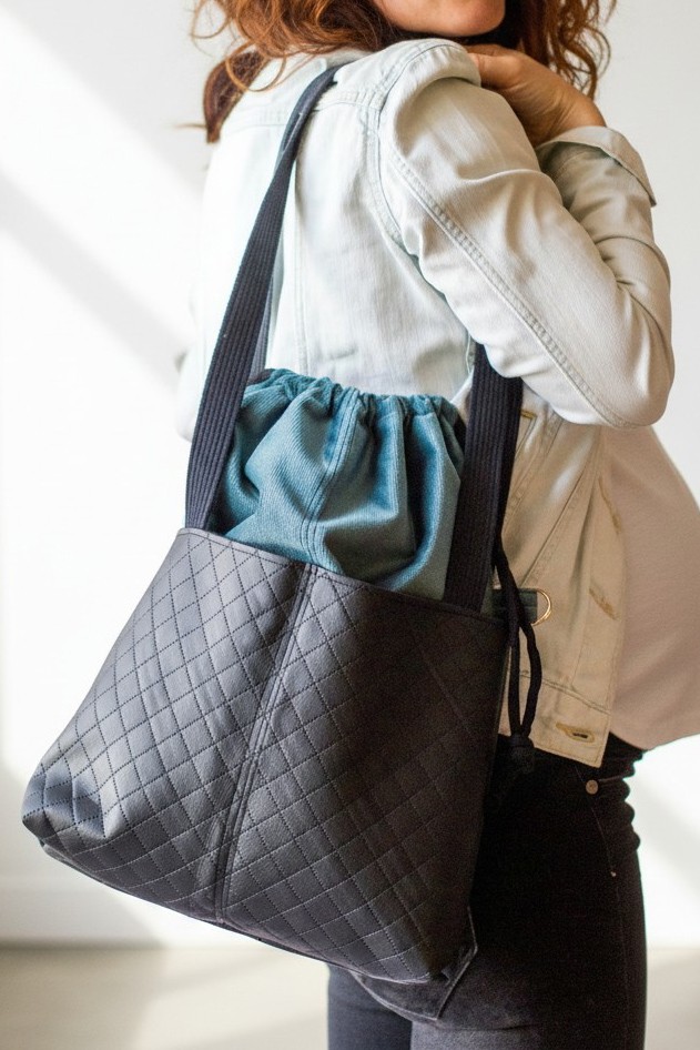 Torba worek wykonana z weluru oraz czarnej pikowanej ekoskóry.