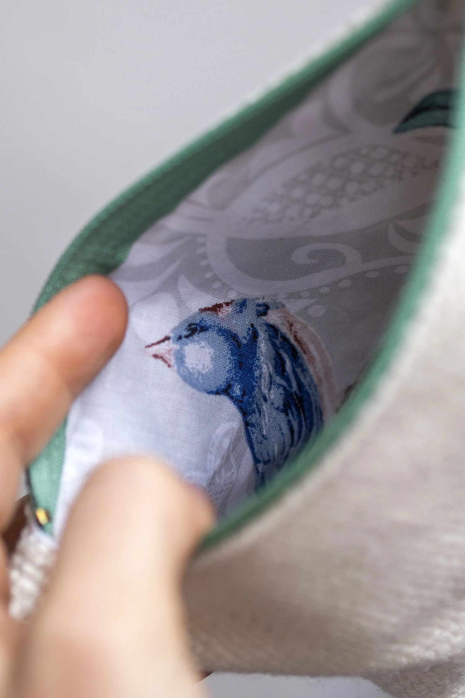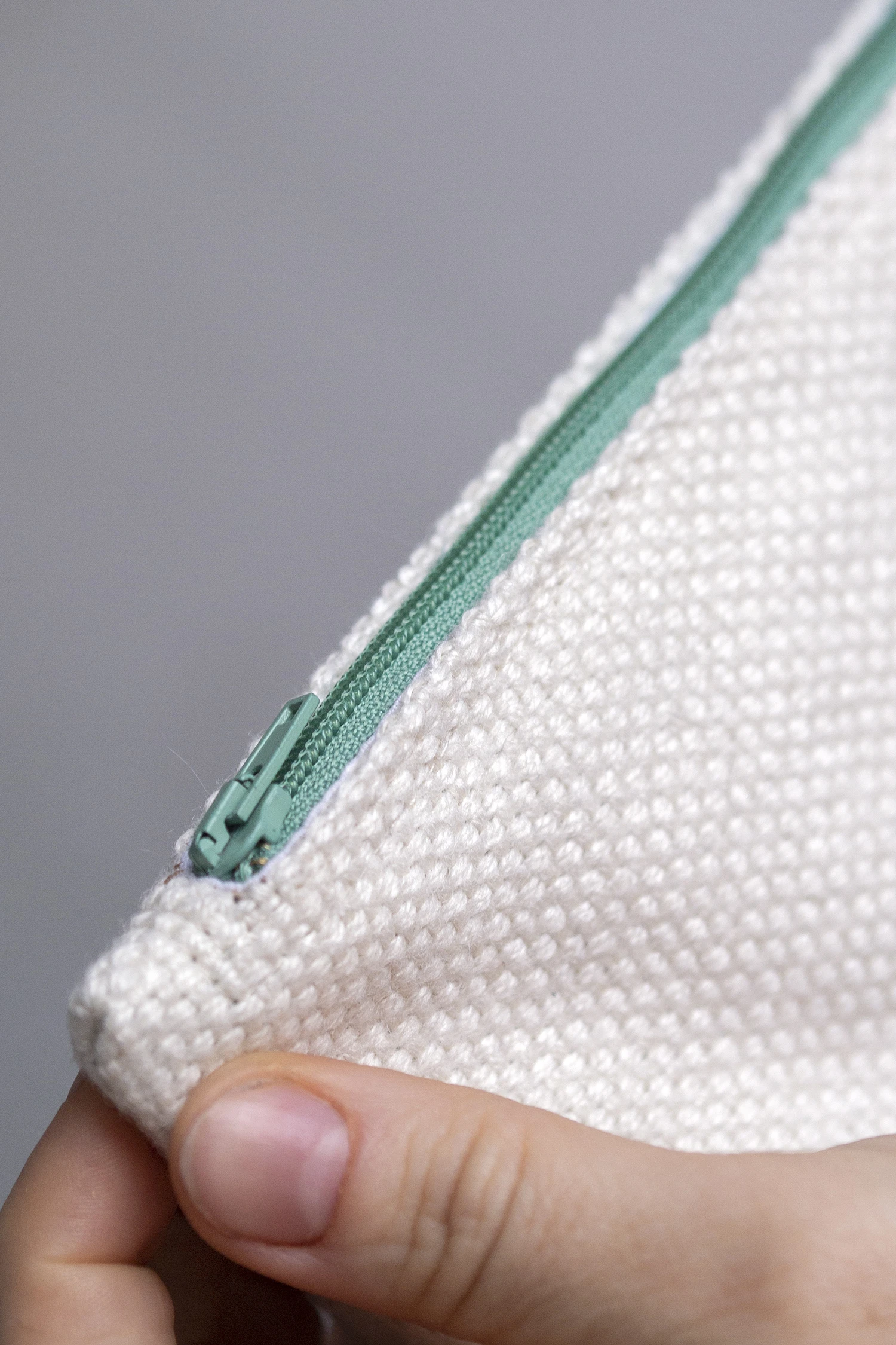 Pleciona kosmetyczka MIDI ecru zielony suwak