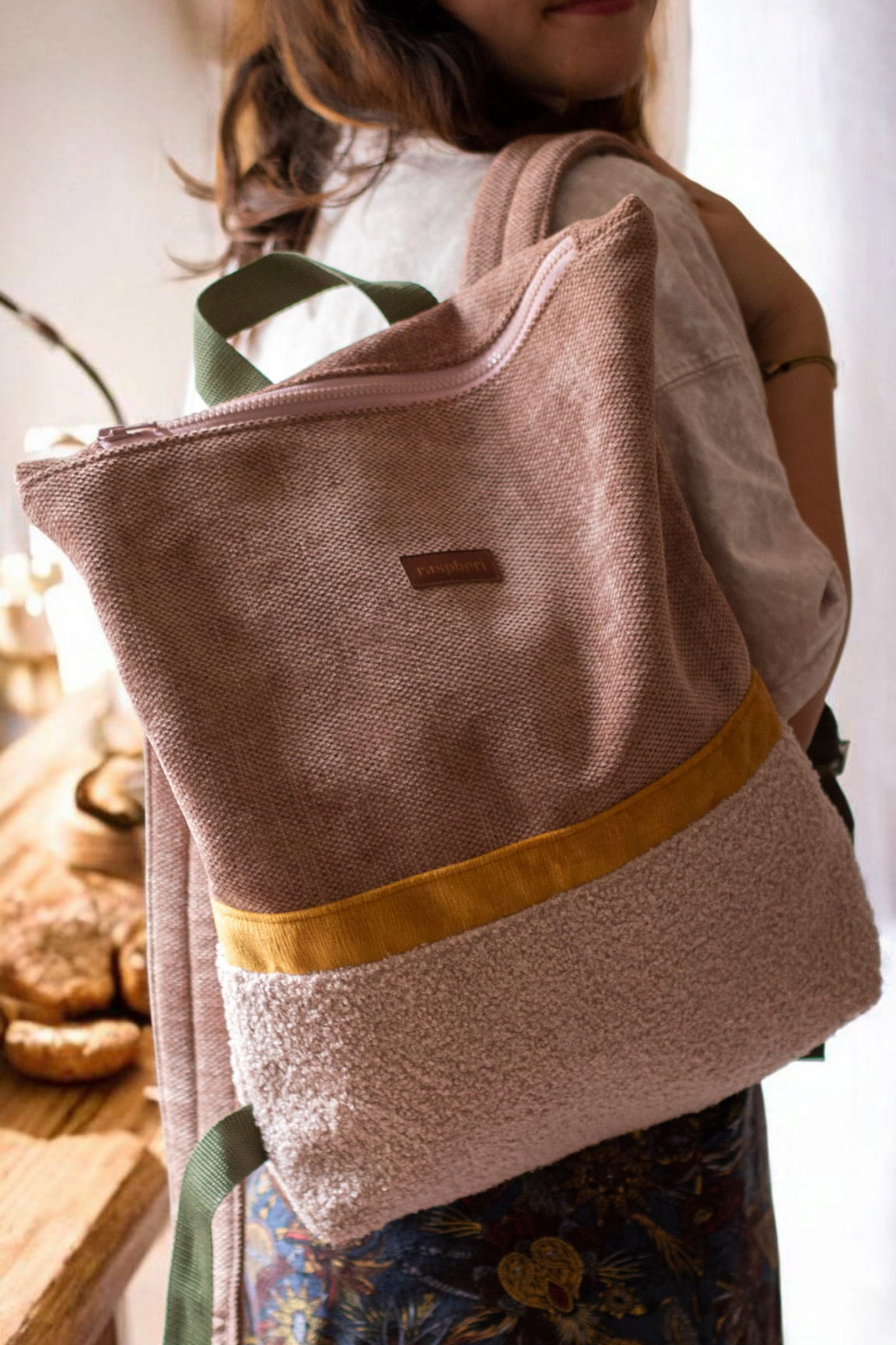 Pudroworóżowy plecak kurierski z suwakiem