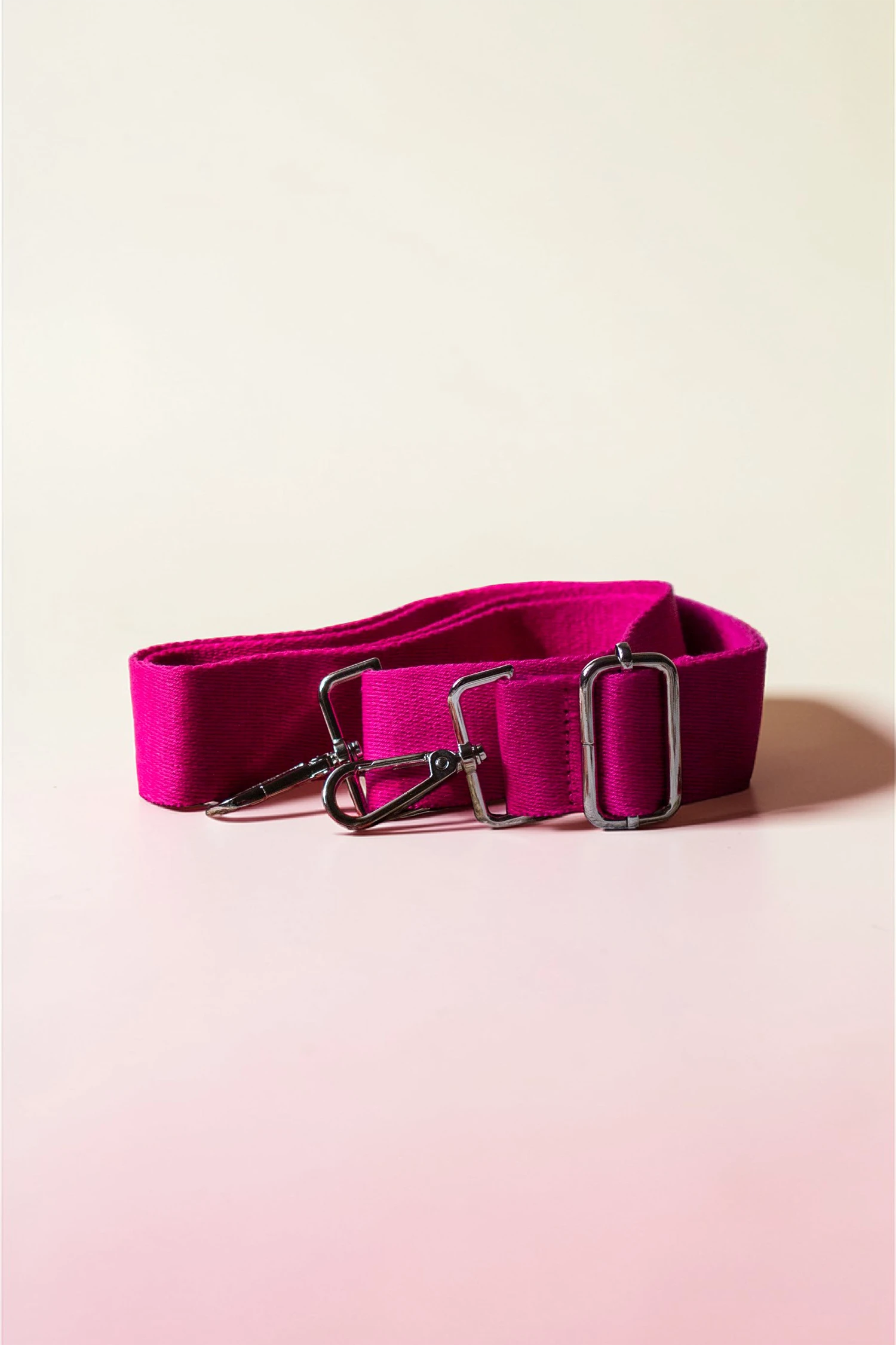 Regulowany pasek w kolorze różowym. Srebrne okucia.