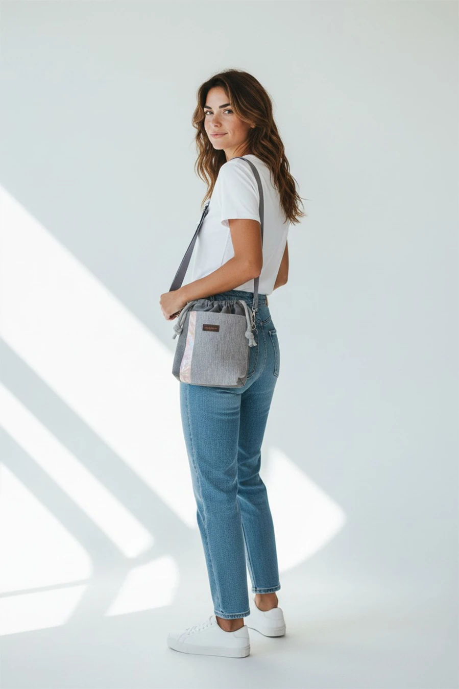 Listonoszka posiada regulowany, bawełniany pasek grubości 3cm w kolorze szarym.