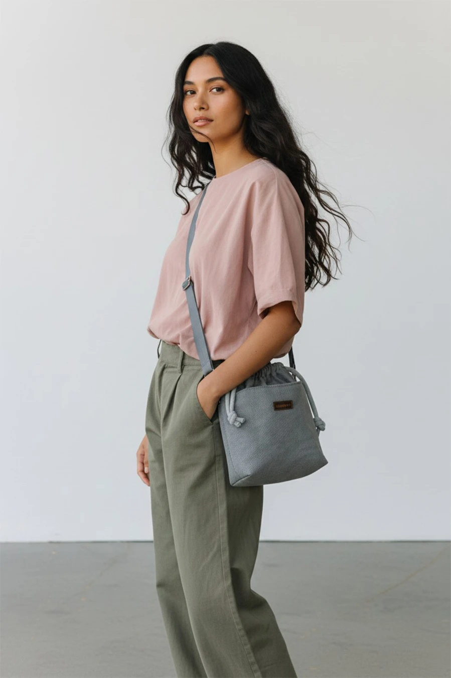 Listonoszka posiada regulowany, bawełniany pasek grubości 3cm w kolorze szarym.