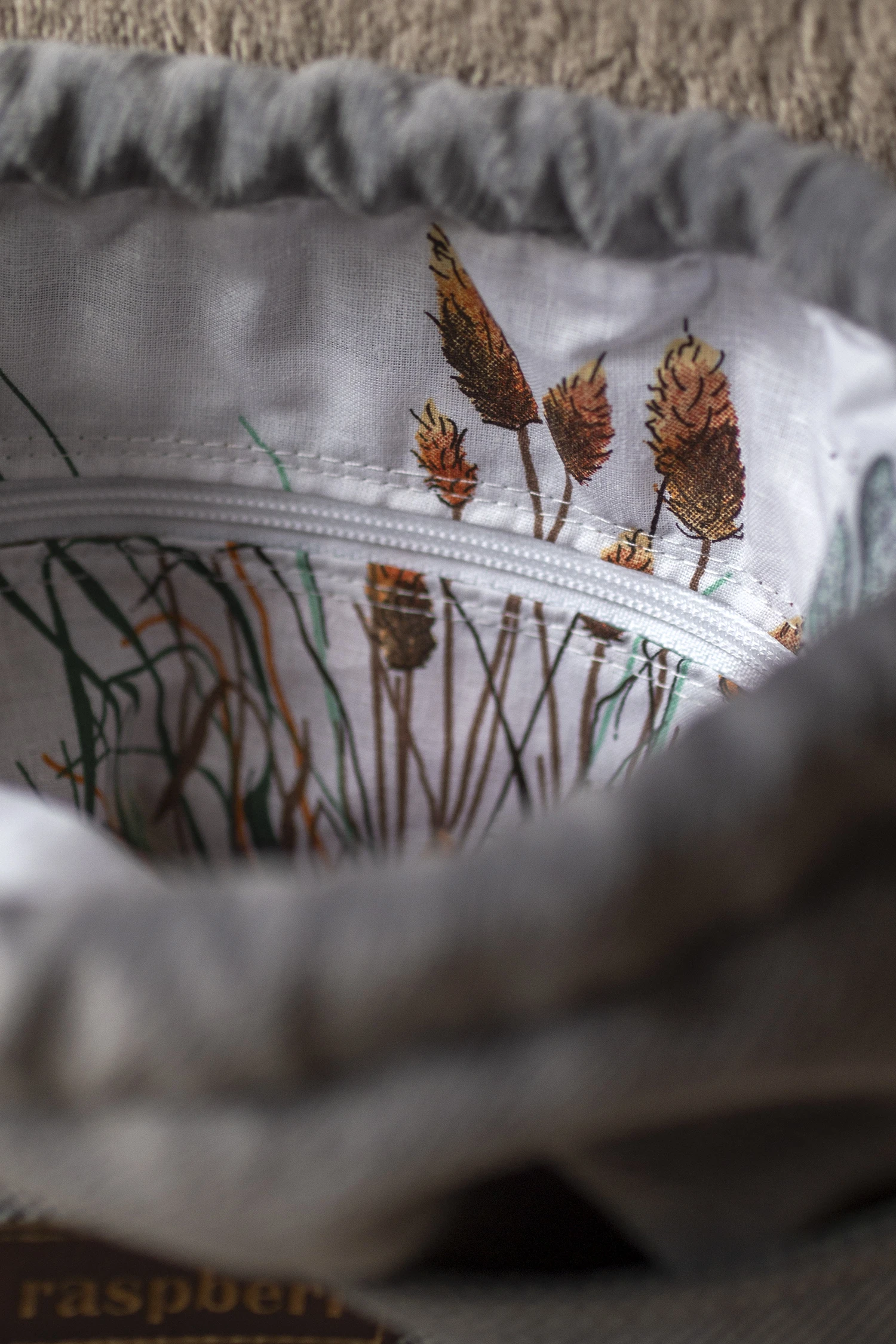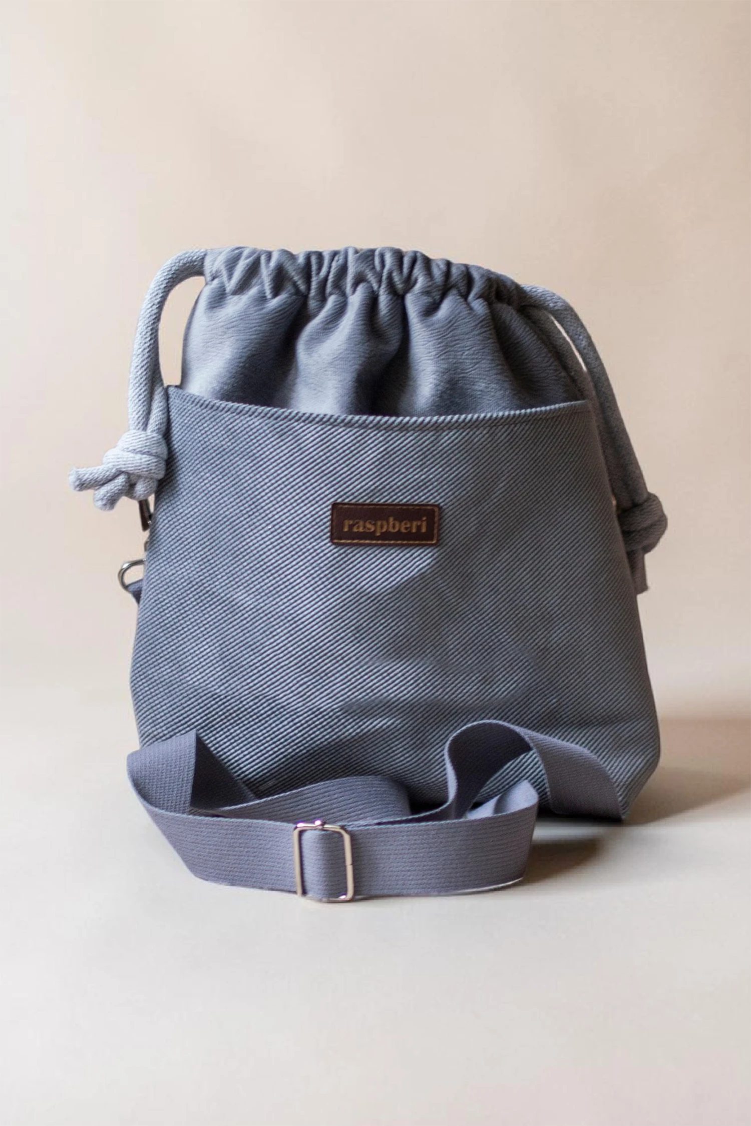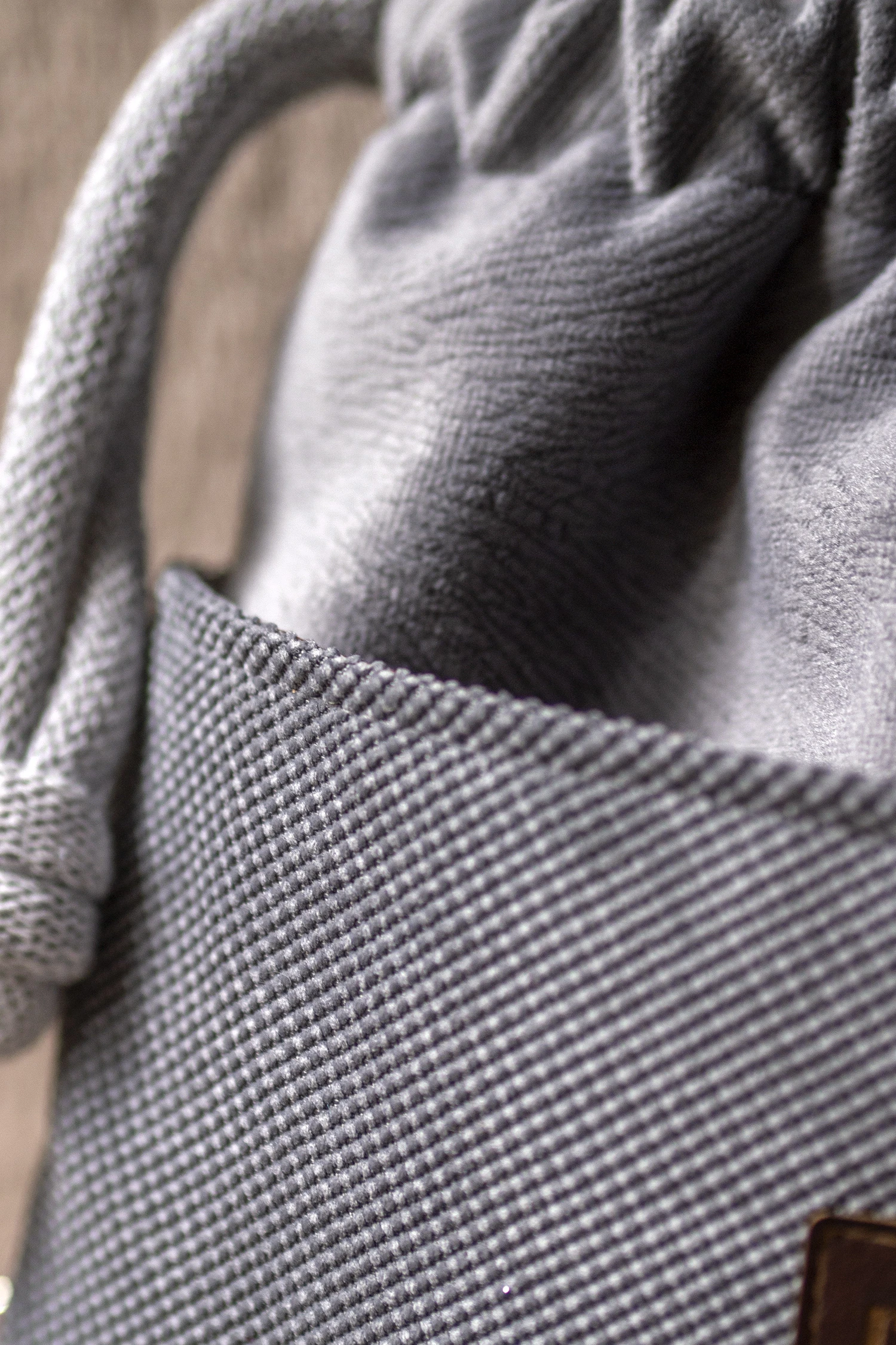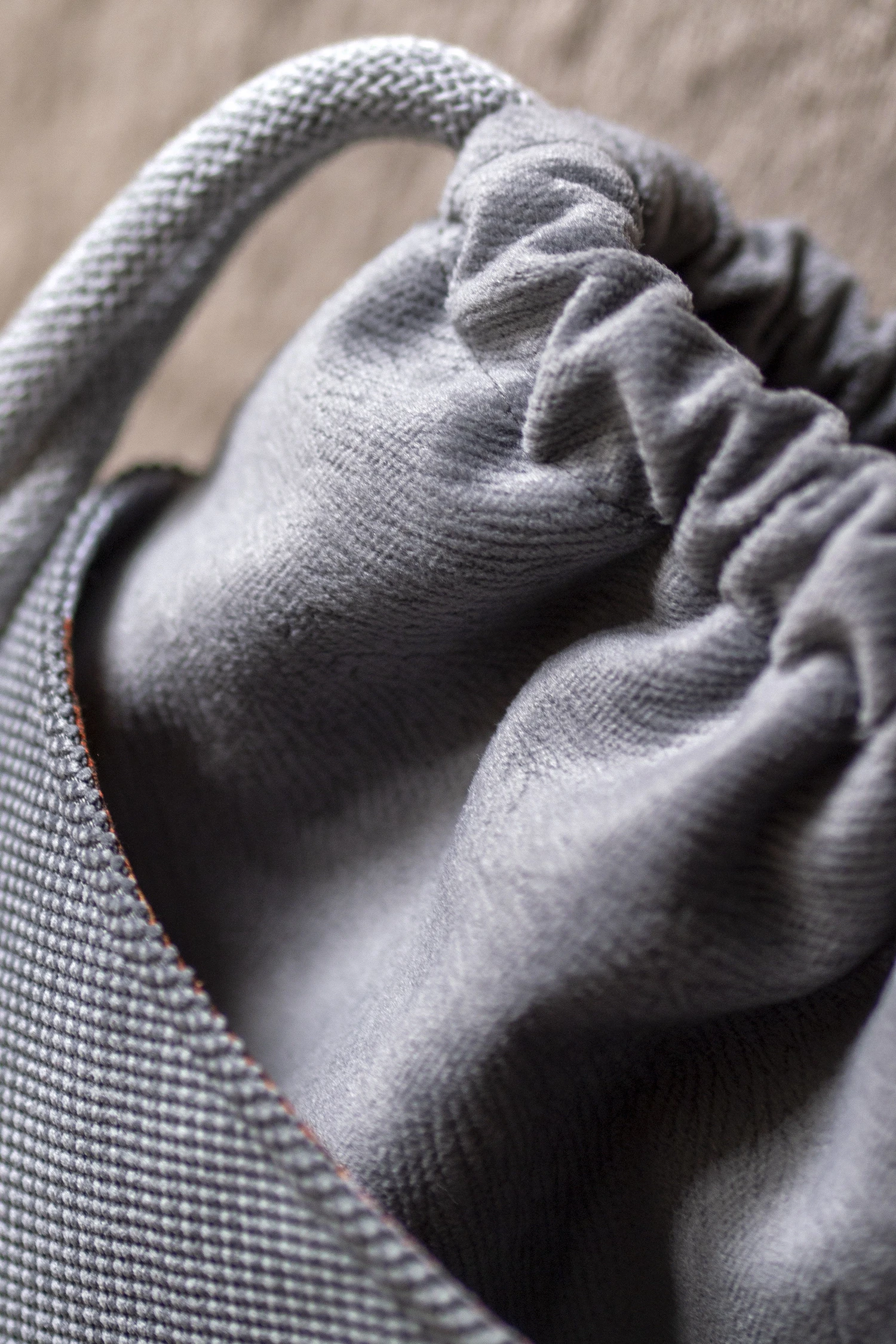 Całość ściągana grubym, bawełnianym sznurkiem w kolorze jasnoszarym.