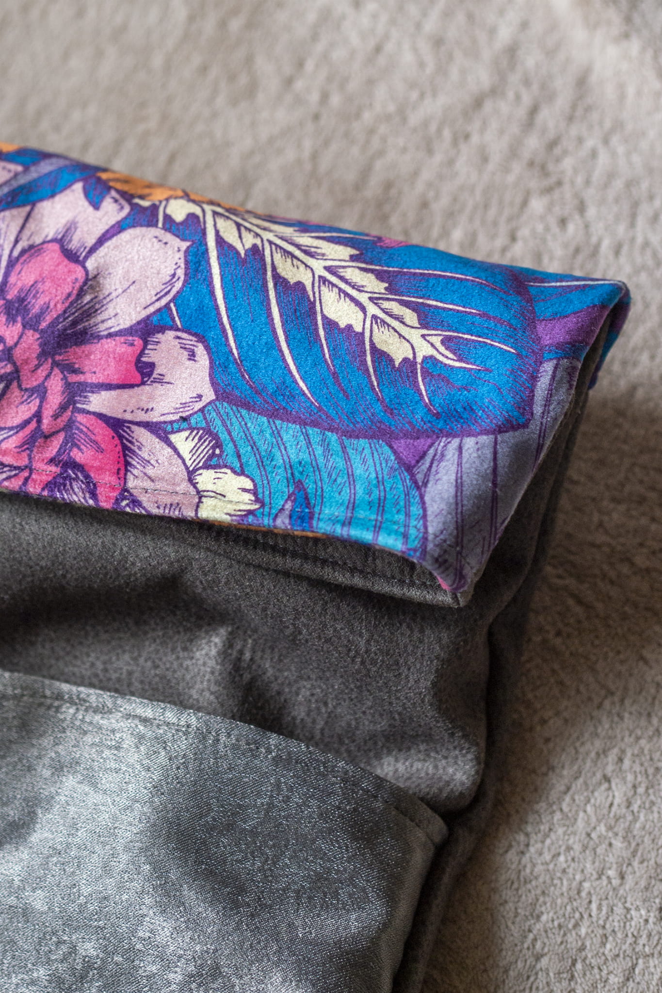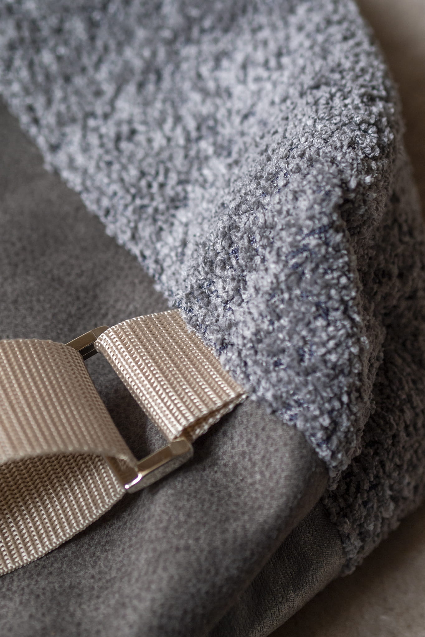 Regulowane paski. W środku laurowa, bawełniana podszewka w kwiaty oraz mała kieszonka na suwak.