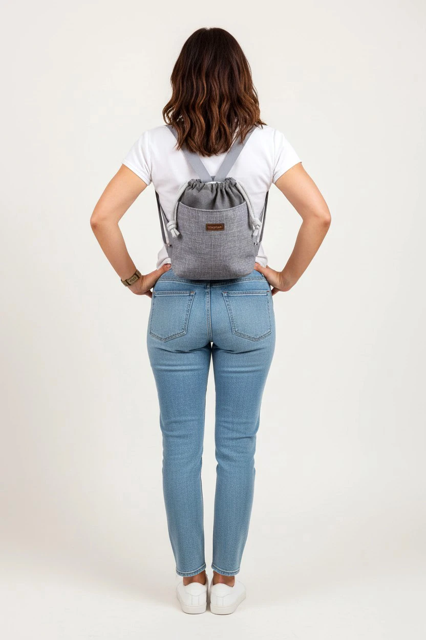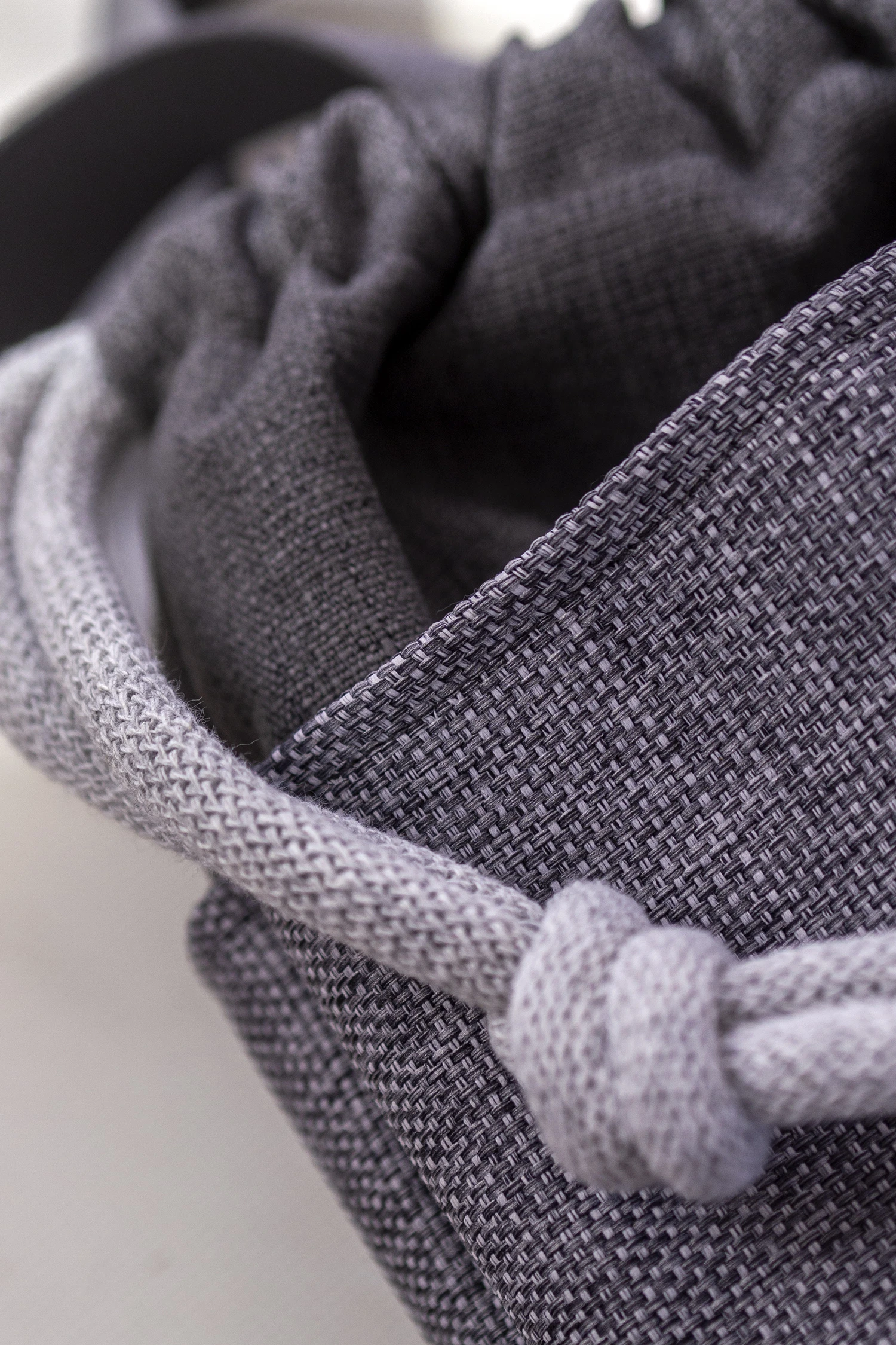 Całość ściągana grubym, bawełnianym sznurkiem w kolorze jasnoszarym.