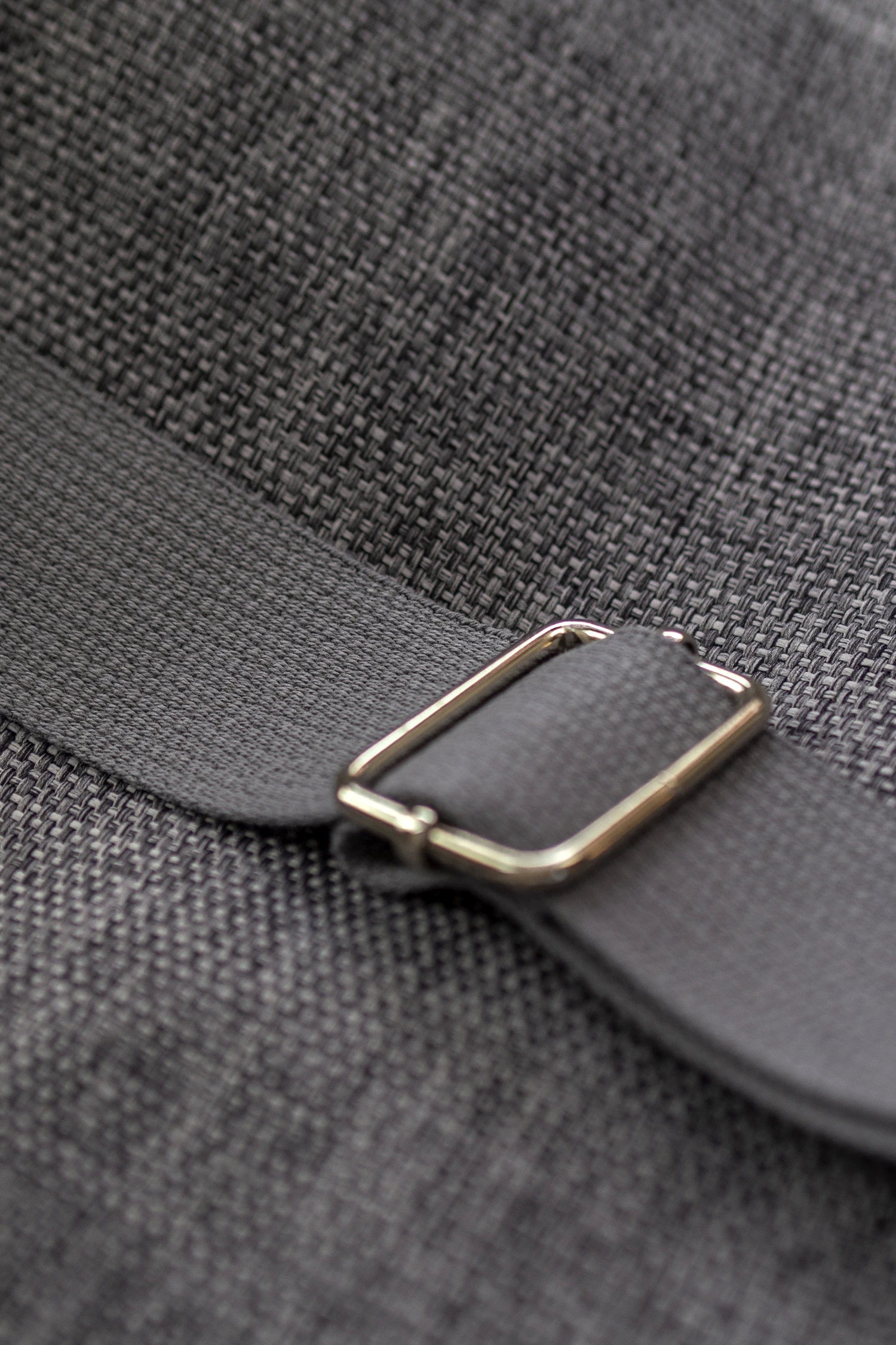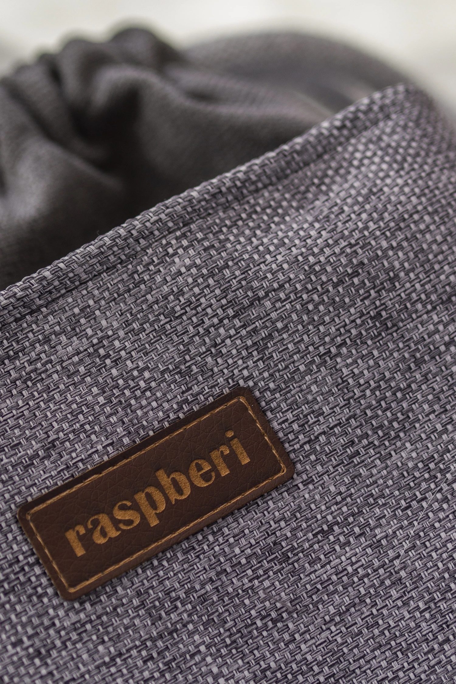 Wykonany z tkaniny w kolorze ciemnoszarym. Z przodu oraz z na tyle torebki kieszenie (np. na telefon czy chusteczki) z szarej plecionki.