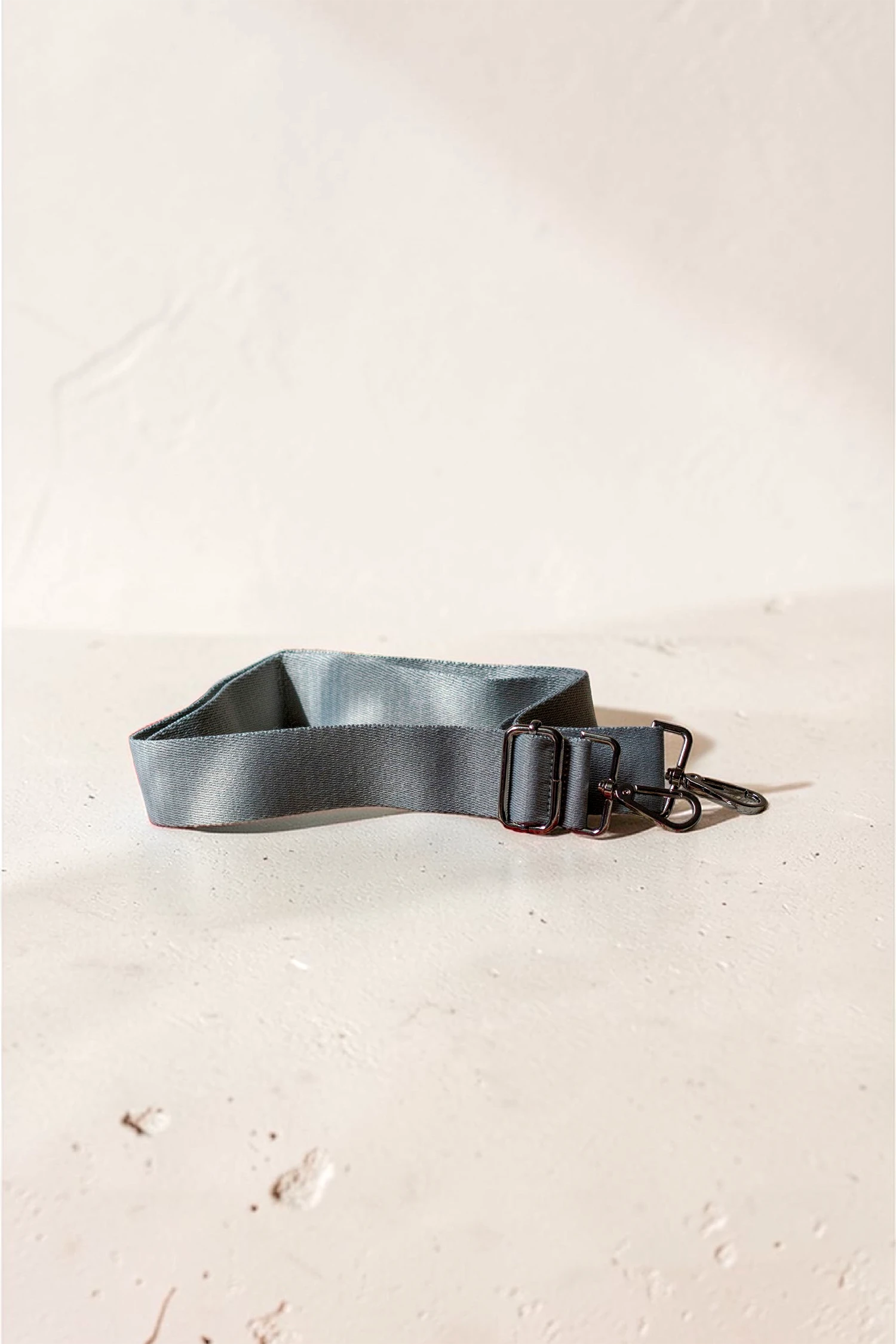 Regulowany pasek w kolorze szarym. Srebrne okucia.