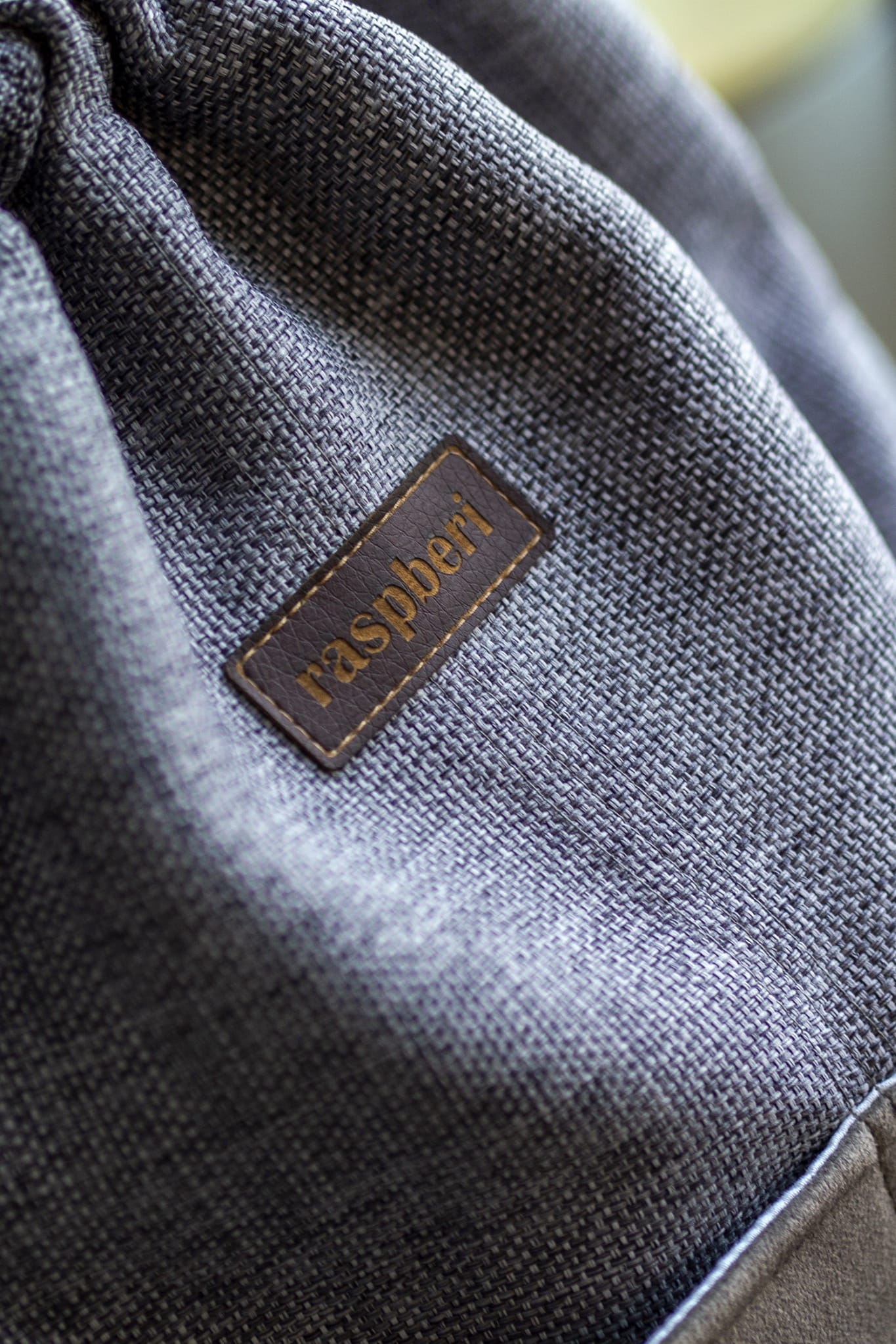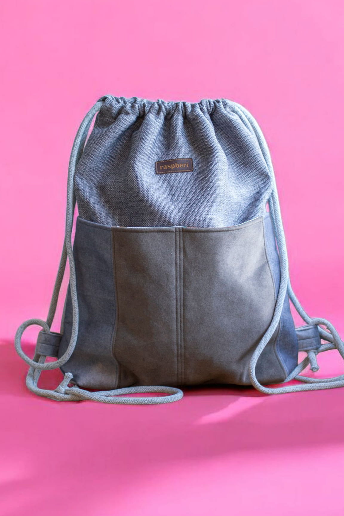 Workoplecak z plecionej tkaniny w kolorze szarym.