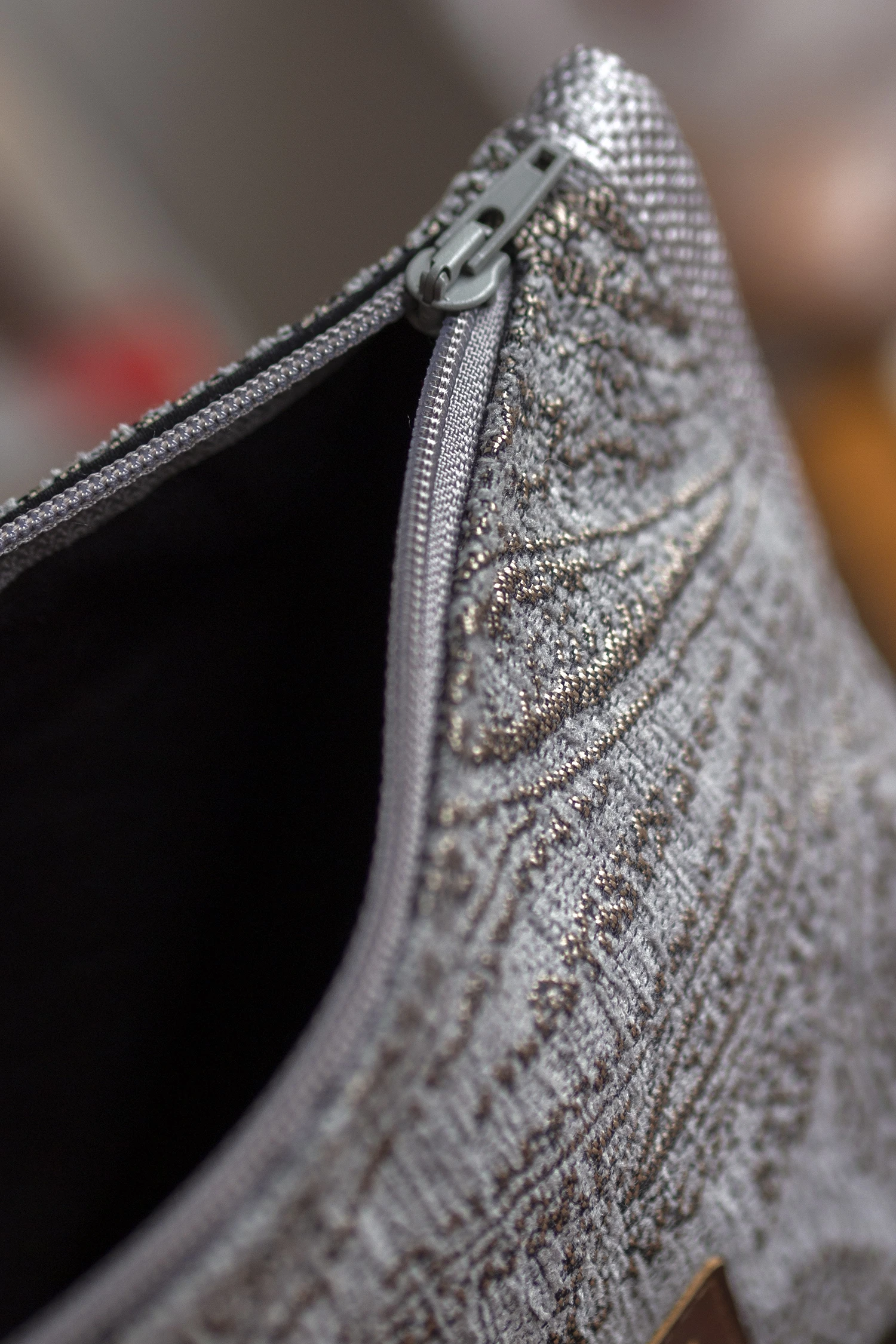 Kosmetyczka jest zapinana na suwak, w środku bawełniana podszewka.