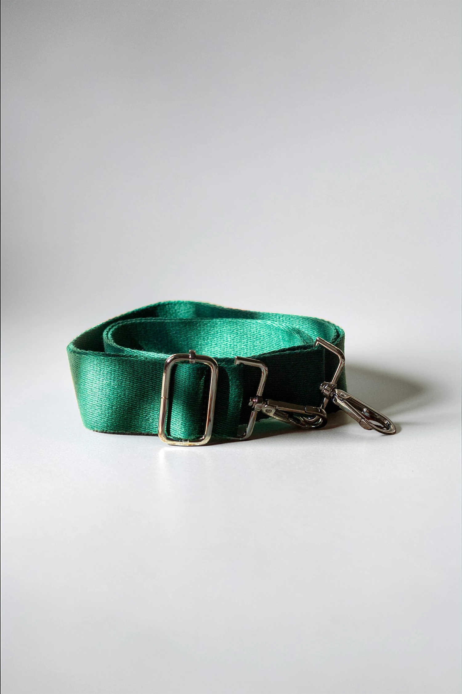 Regulowany pasek w kolorze zielonym. Srebrne okucia.