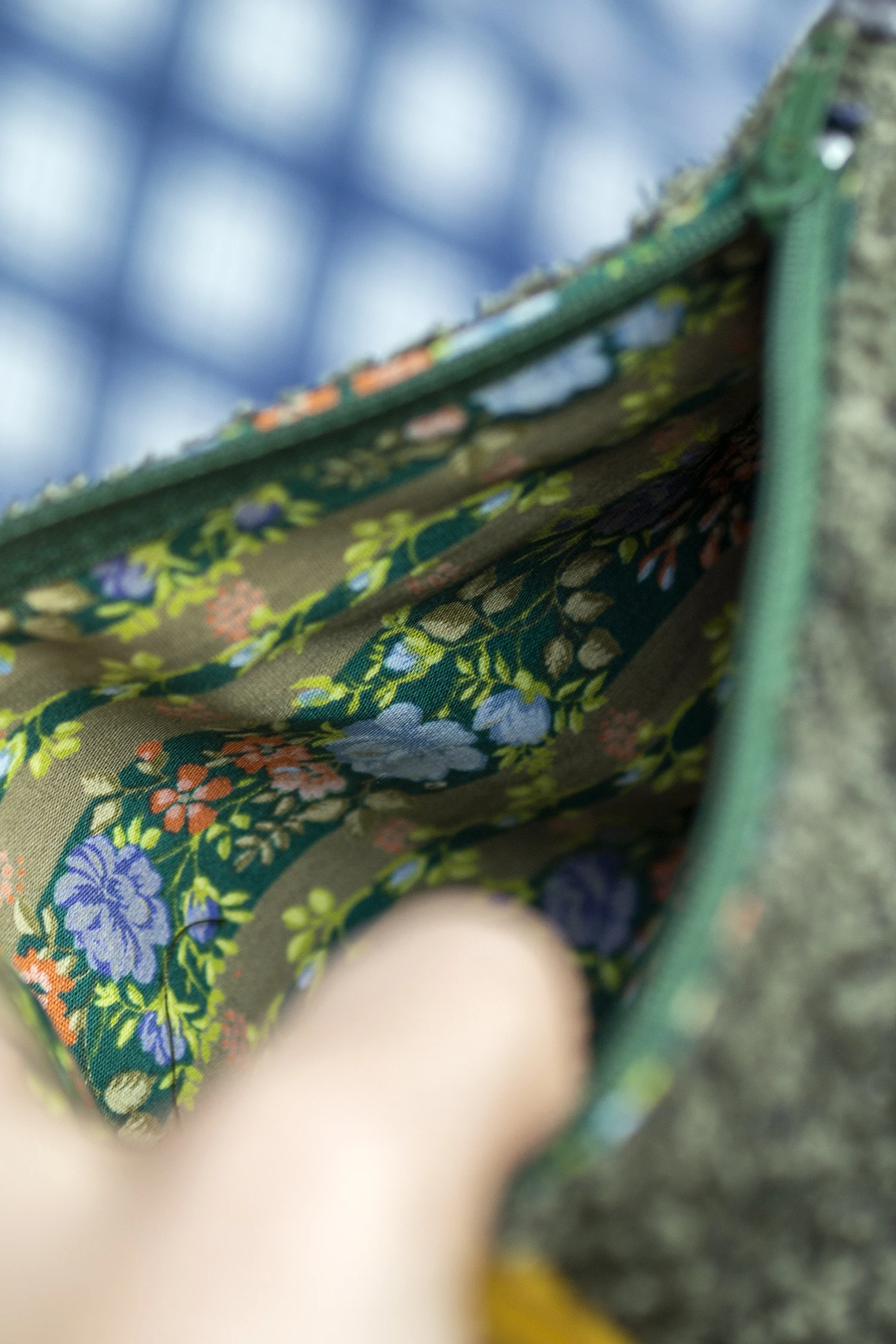 Kosmetyczka jest zapinana na suwak, w środku bawełniana podszewka.