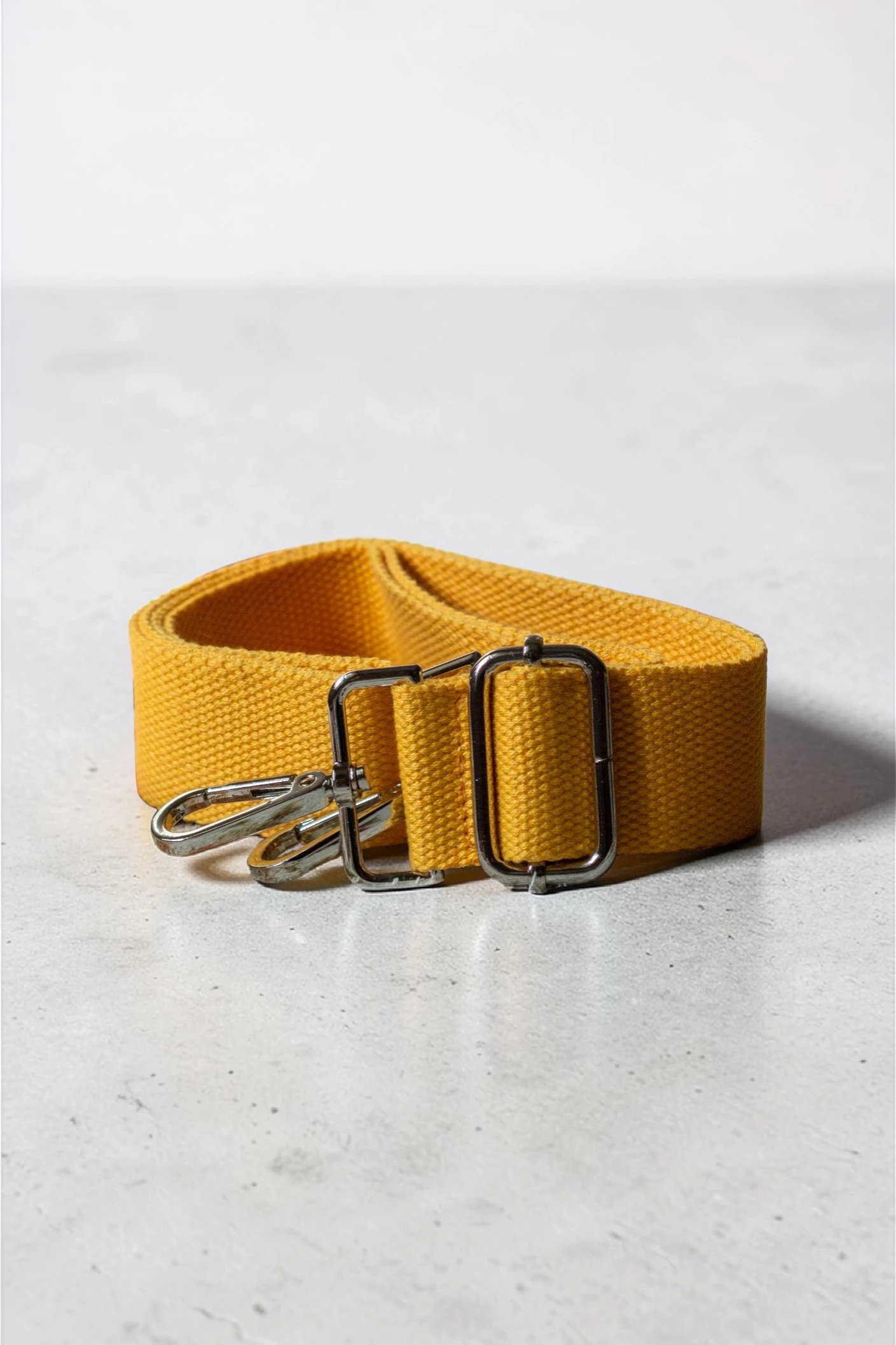 Regulowany pasek w kolorze żółtym. Srebrne okucia.